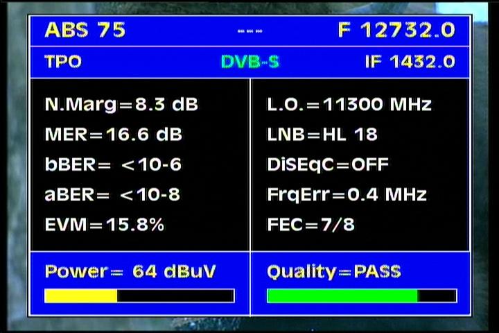 ABS 1 at 75.0 e-northern footprint-12 732 V Packet GTSS TV-IF dataABS 1 at 75.0 e-northern footprint-12 732 V Packet GTSS TV-Q dataABS 1 at 75.0 e-northern footprint-12 732 V Packet GTSS TV-NIT data