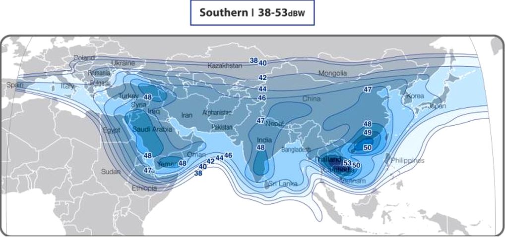 range of spectrum : 12 551-12 598 MHz      coverage area:Asia,ME,parts of Africa+Europe