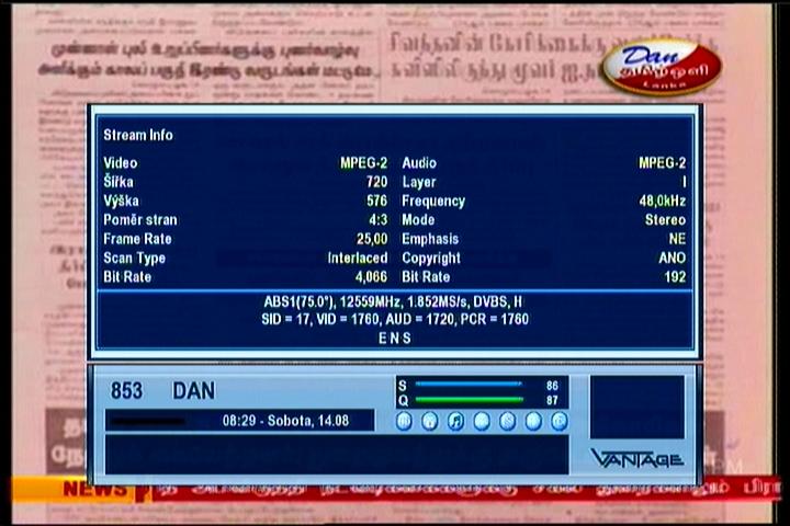 ABS 1 at 75.0°E - southern beam : 12 551 V TV Lanka