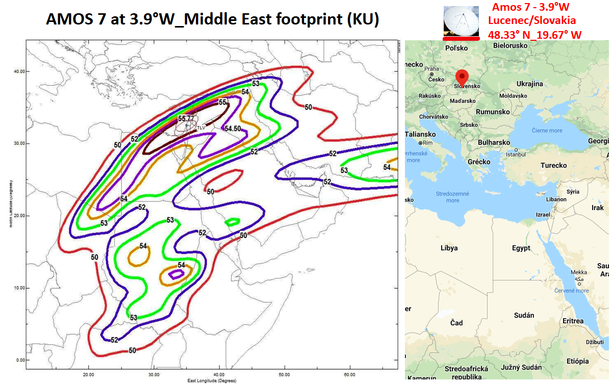 stredo alebo blízko východných vyžarovacích diagramov "Middle East" satelitov Amos 3 a Amos 7,ktoré na jednej strane potvrdzujú
