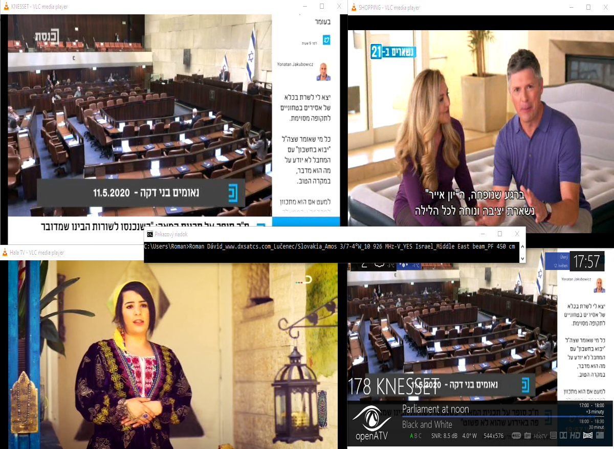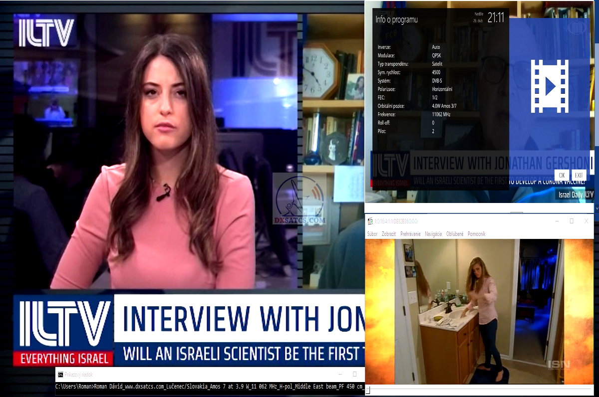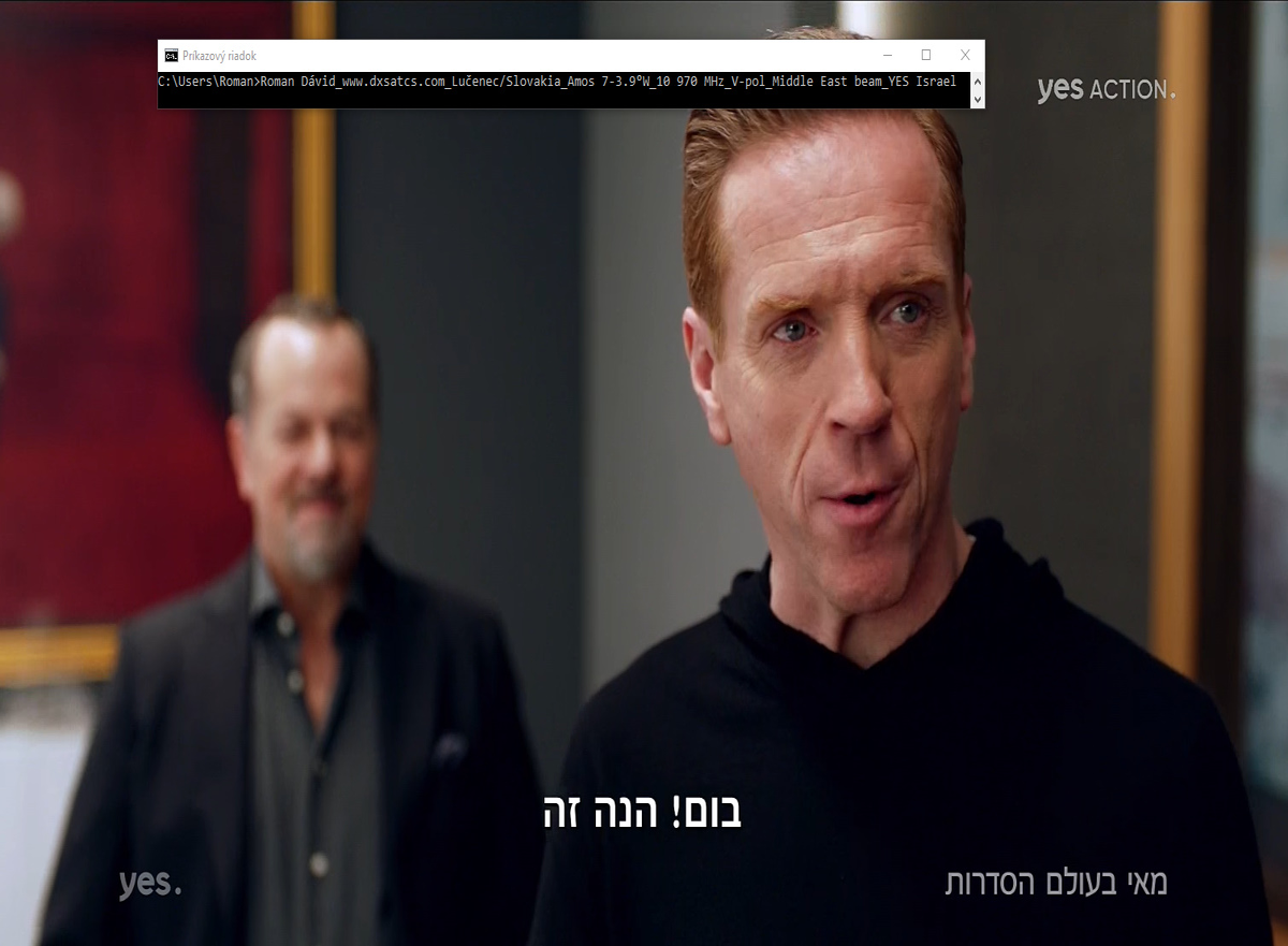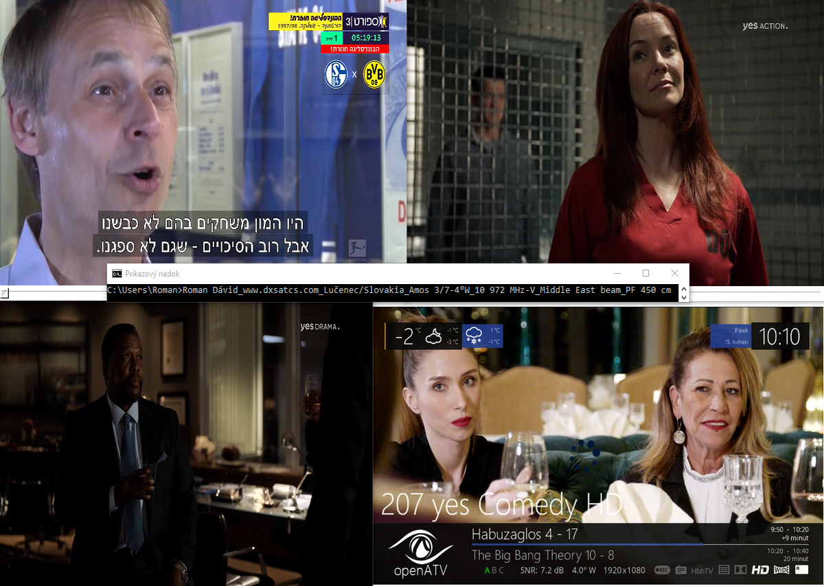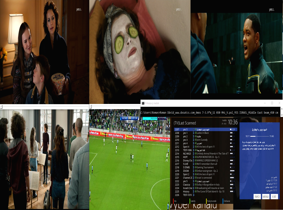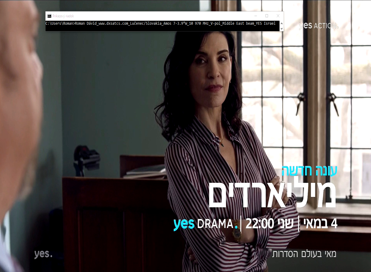 prenosu vo frekvenčnom spektre v definovanej zemepisnej polohe,na súčastnú a zároveň vôbec prvú demonštráciu uzamknutia a kvality príjmu nosnej izraelského tv paketu YES na f=11 554 MHz,ktoré kontinuálne,čiže bez výpadkov v možnosti uzamknutia,trvá od približne 6:00 ráno,už