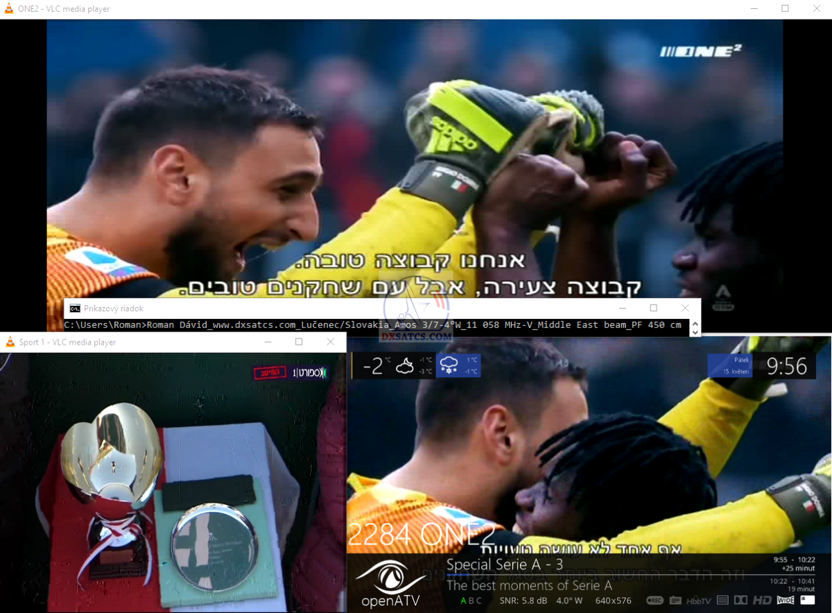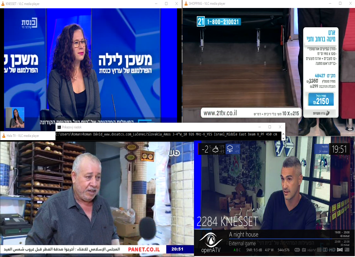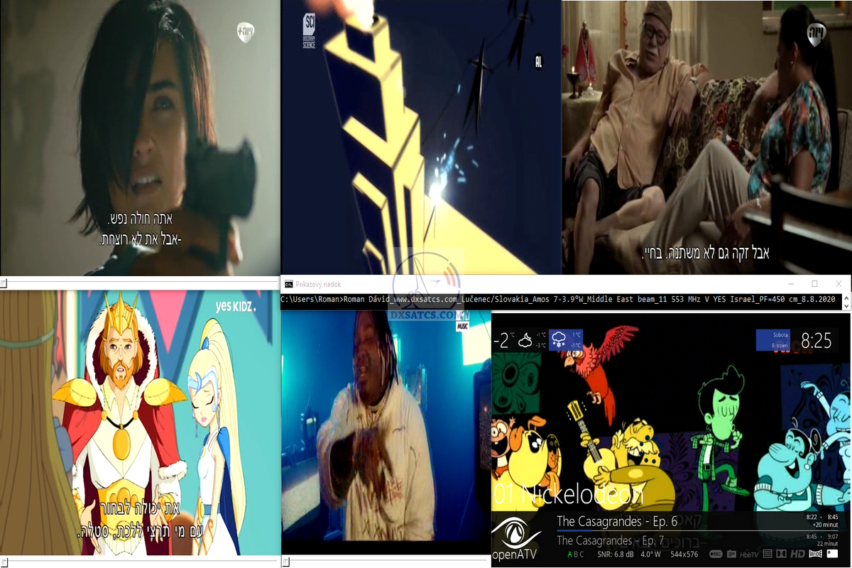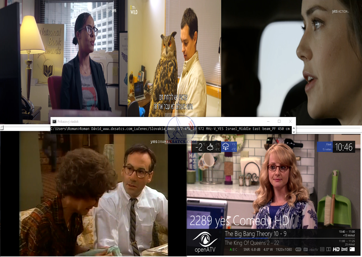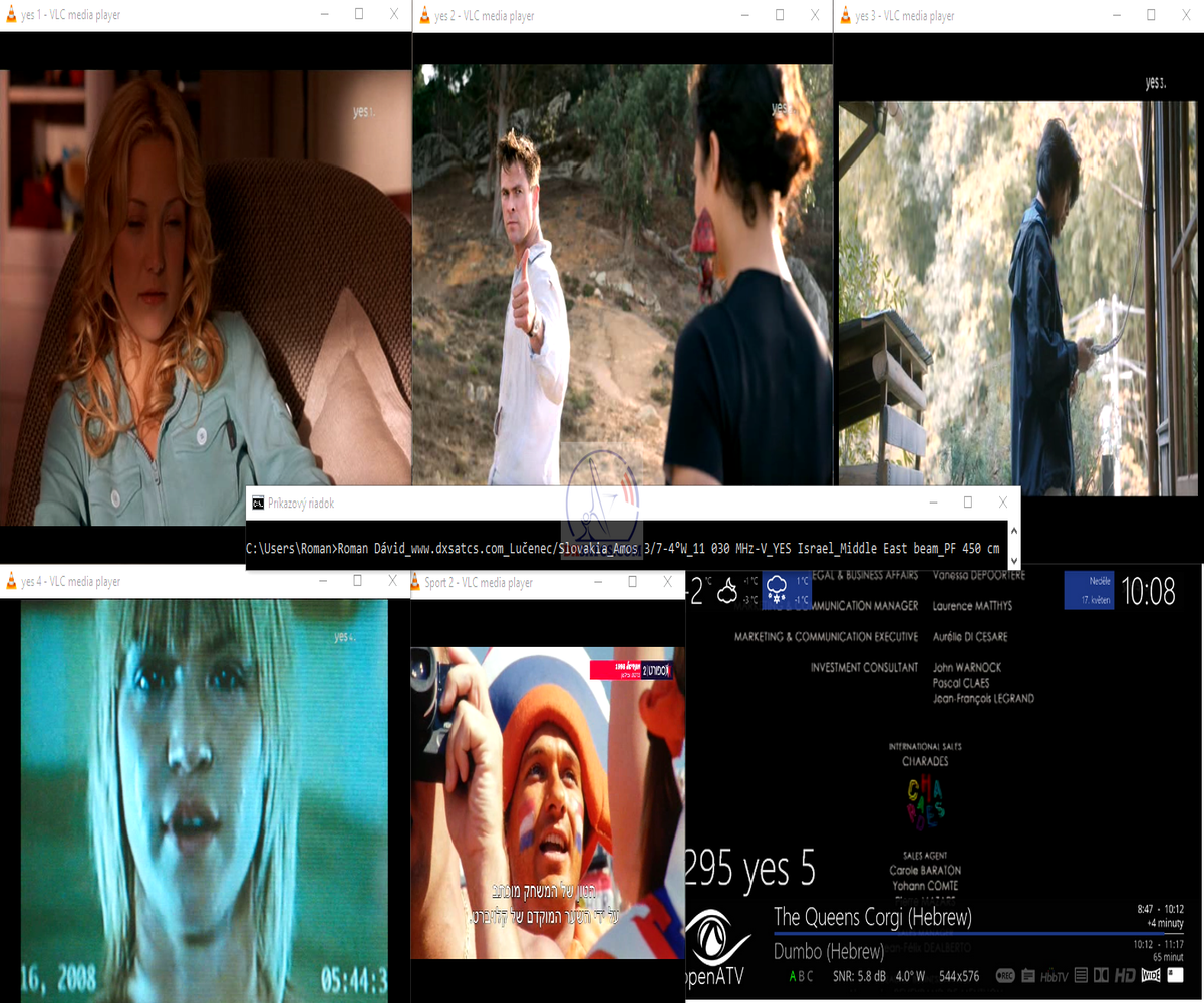 prenosu vo frekvenčnom spektre v definovanej zemepisnej polohe,na súčastnú a zároveň vôbec prvú demonštráciu uzamknutia a kvality príjmu nosnej izraelského tv paketu YES na f=11 554 MHz,ktoré kontinuálne,čiže bez výpadkov v možnosti uzamknutia,trvá od približne 6:00 ráno,už