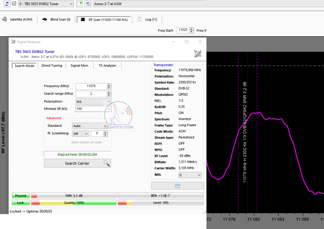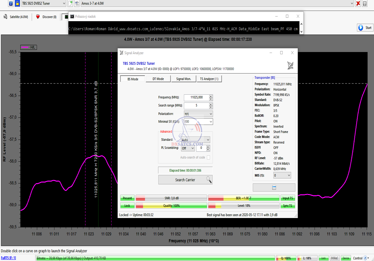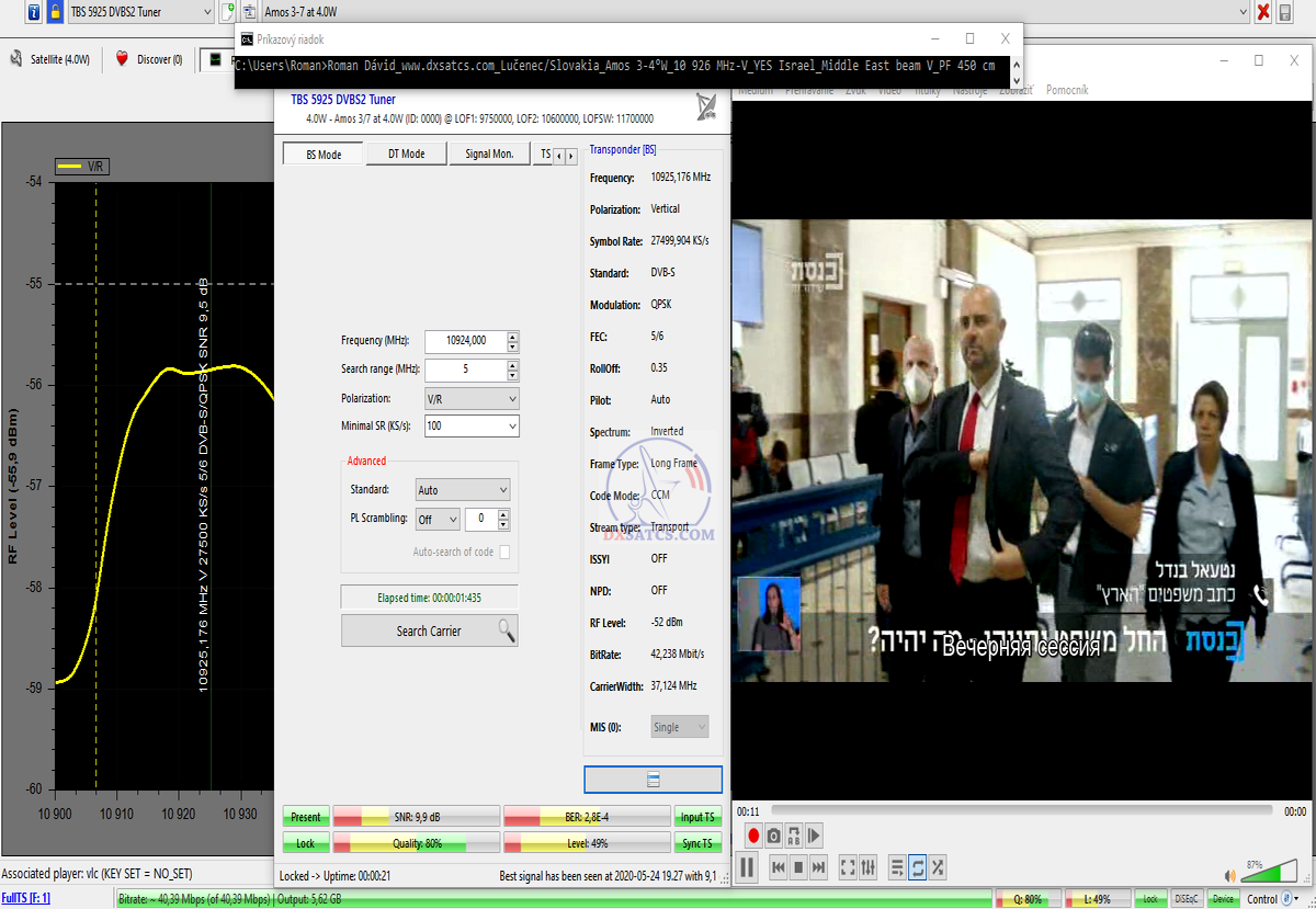 ►16.8.2020 : PREMIÉRA od autora Romana Dávida : PRVÝ kontinuálne prítomný (stabilne detekovatelný) LOCK nosnej KAN Izrael na f=11 113 MHz v centrálnej európskej zóne z družice AMOS 7-3.9°W s amplitúdou kvality až MER=9,2 dB ...
