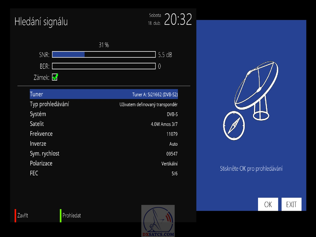 verifikačný stream s reálnou kvalitou satelitného príjmu v meste Lučenec na výstupe z antény Prodelin 4.5m