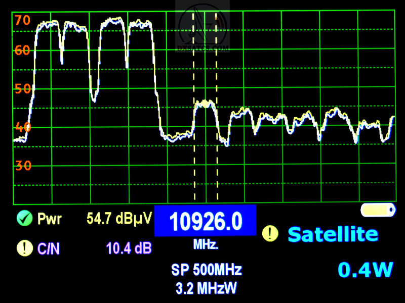 ⇒1, f0=10 926 MHz_V : je to jediná frekvencia z celého vertikálne polarizovaného frekvenčného spektra na ktorej je možné KAŽDÝ DEŇ dokázať (až na niektoré príjmové špecifiká to platí v 98-99 % prípadov) jeden stabilný/kontinuálny priebeh LOCKU nosnej s minimálnou rezervou, ktorá nikdy neklesne pod MER/SNR=2 dB.To platí za predpokladu prítomnosti nasledovných klasifikácii podmienok v atmosfére: 0-1/8 jasno, 2/8 takmer jasno, 3/8 malá oblačnosť, 4/8 polojasno/polooblačno, 5-6/8 oblačno