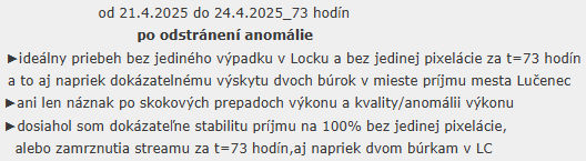 ►+ 73 hodín_Priebežný stav v signálnom monitoringu dňa 24.4.2025 a online video ukážky