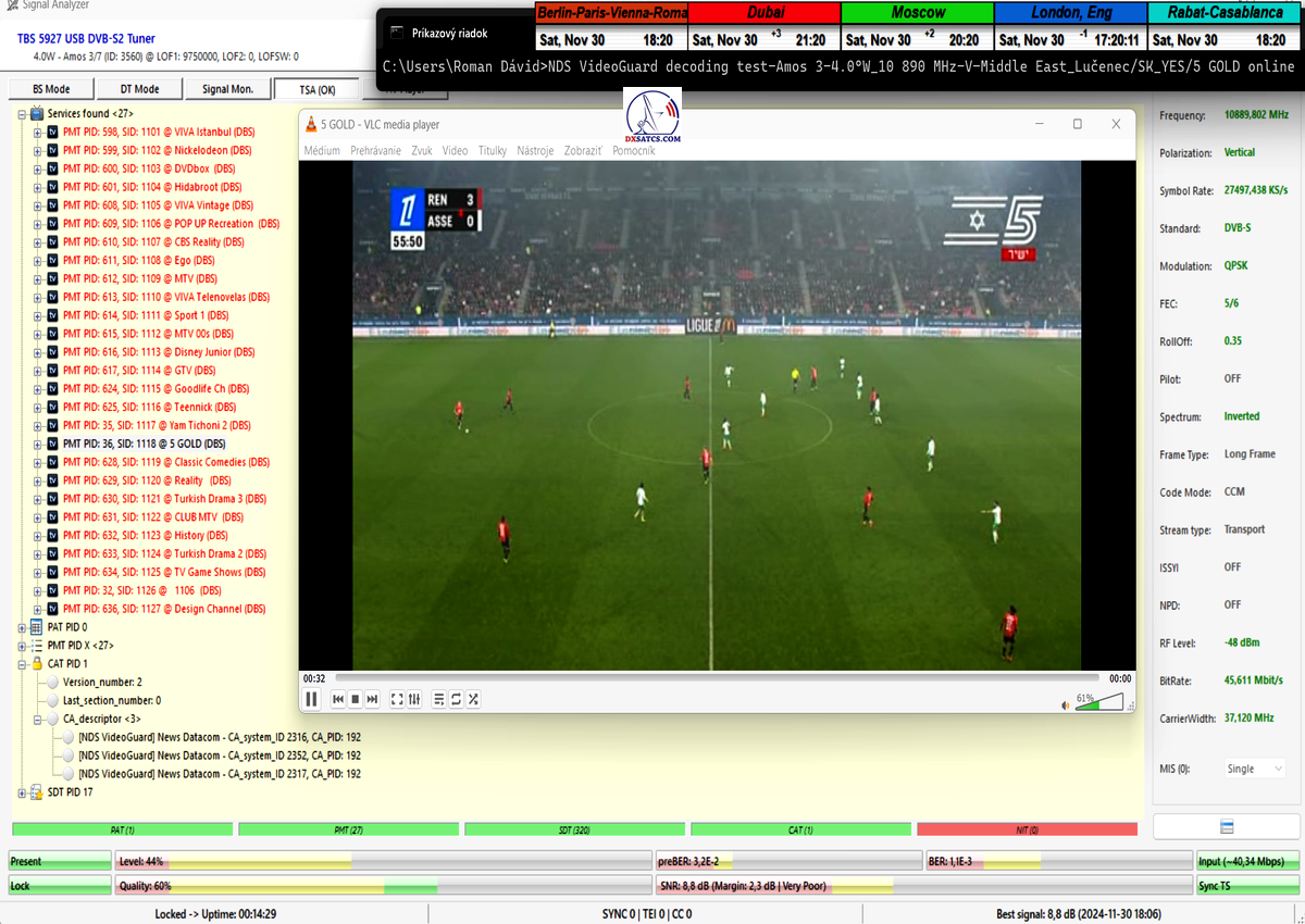 ►5x YES Israel & NDS Videoguard decoding test_30.11.2024_Lučenec/Slovakia by Roman Dávid : click and watch