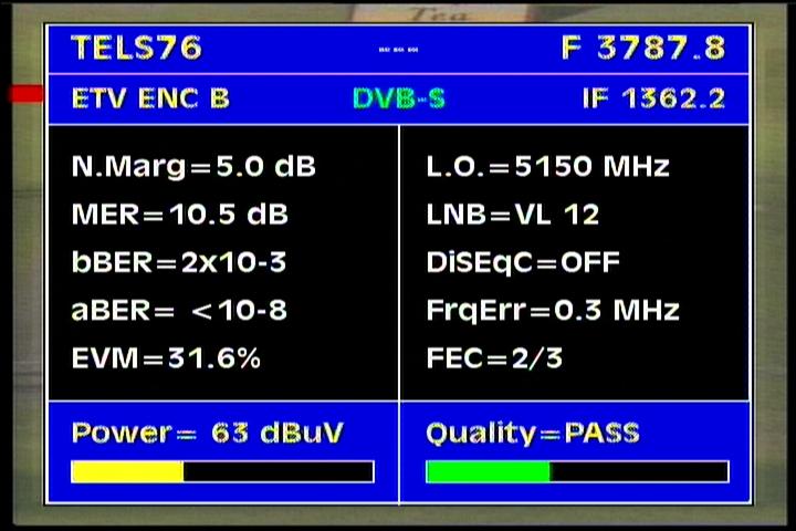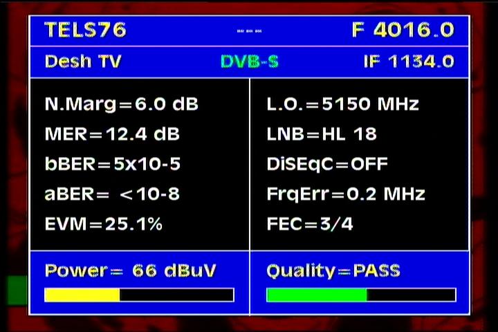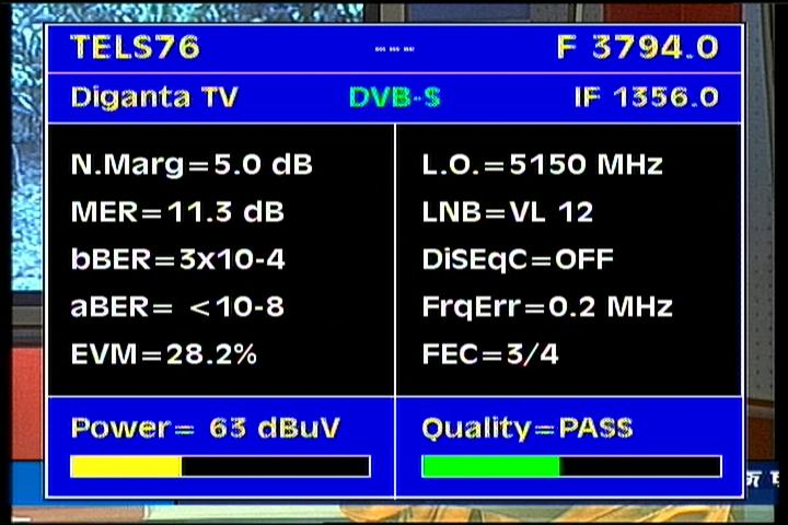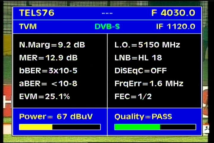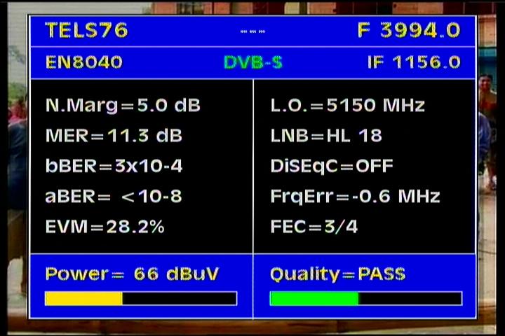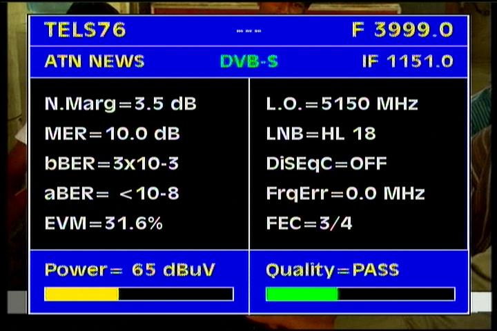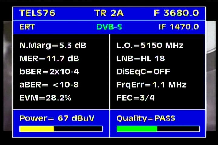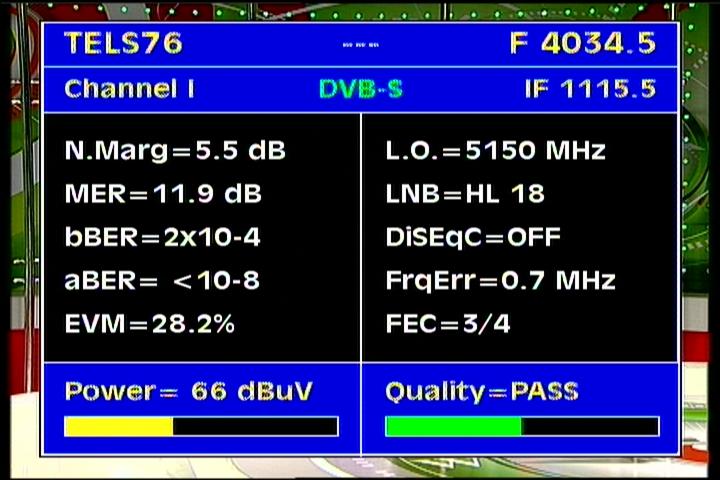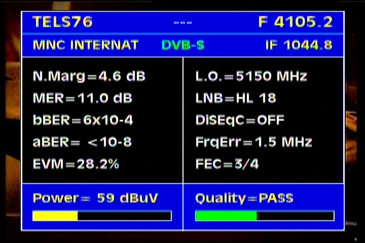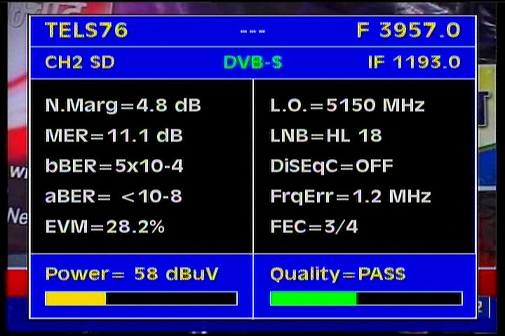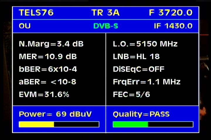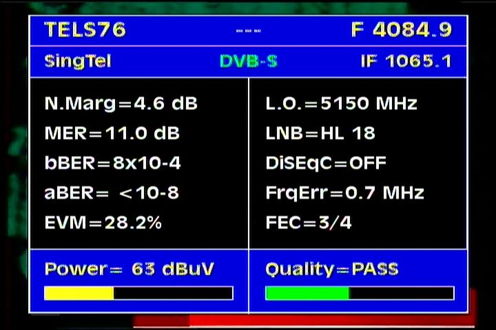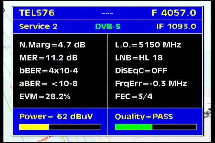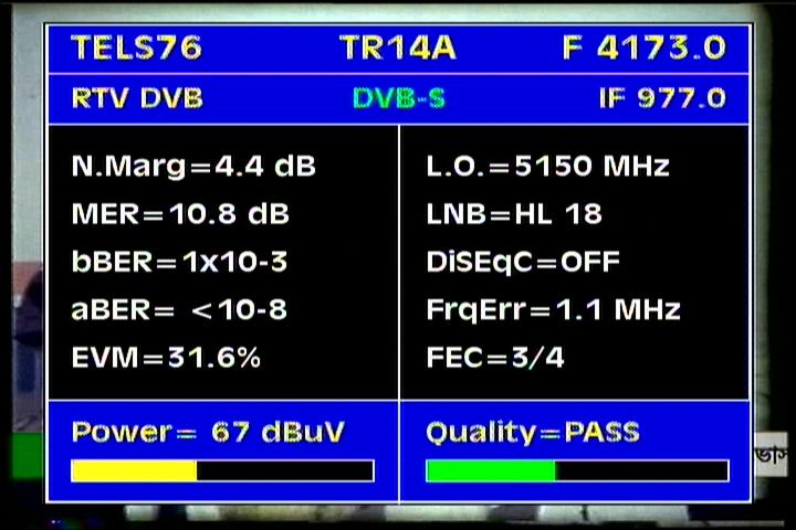 Apstar 2R at 76.5°E-global beam in C band : 4 173 H Rtv - qualitative peak MER=11.1 dB