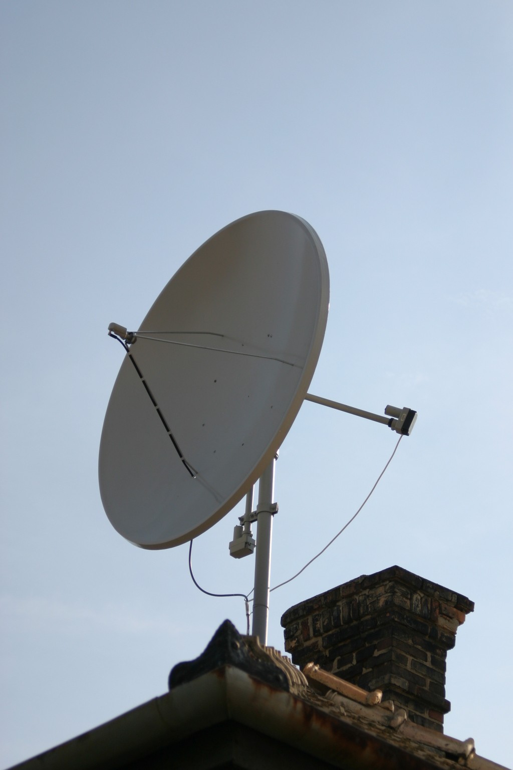 Stredova antena s priemerom 180 cm pouzita pri prijime druzice ARABSAT 2B