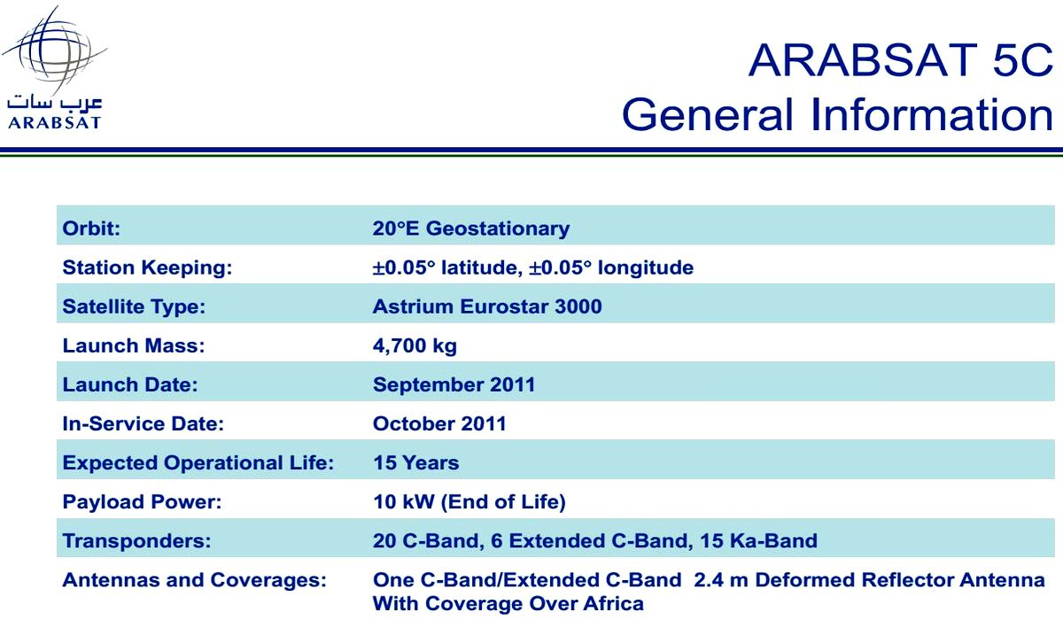 ►Arabsat 5C-20.0°E-KA-band : General information / source : www.arabsat.com