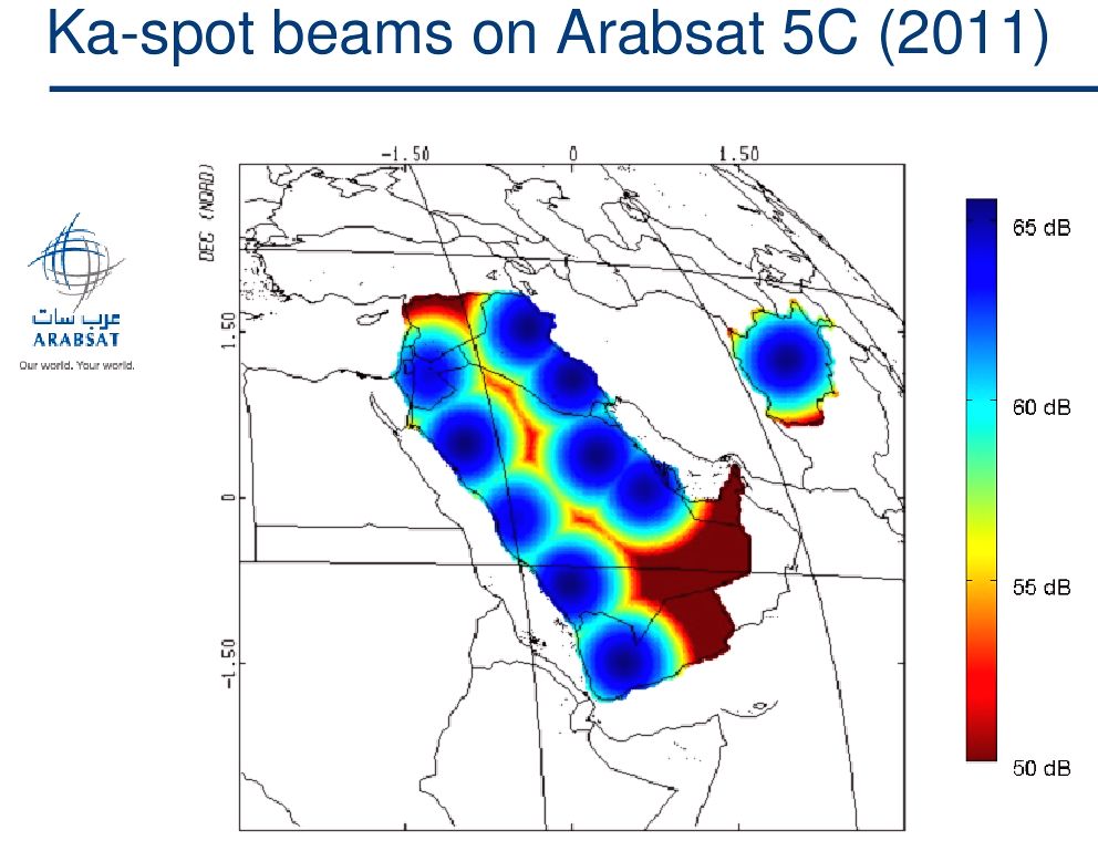 Arabsat 5C satellite,operating in standard KU+KA+C-band and the new extended C-band allocations.
