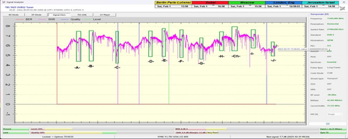 ►A-B-C-D-E-F-G... sú momenty v ktorých replikujem alebo vkladám nové a aktualizované dáta z mnou vytvoreného signálneho modelu do anténneho systému,ktoré budú platné v nasledovnom časovom úseku typicky 4-6 hodín.Správnosť týchto dát je okamžite verifikovaná vysokým rastom signálnej kvality,konkrétne pre toto vlnenie od 0,4 do 1,7 dB