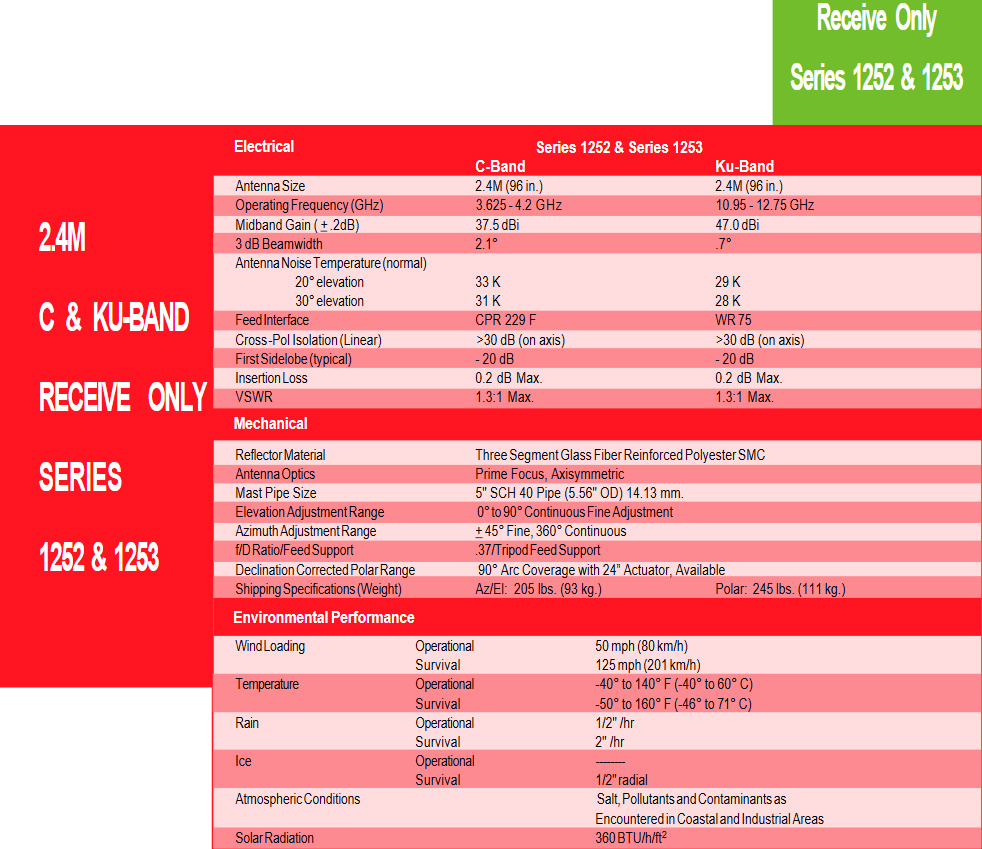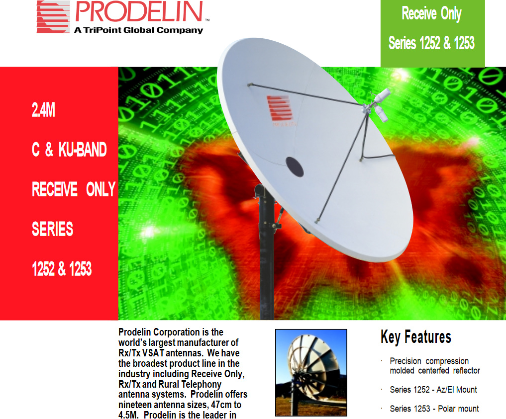 Firma Prodelin k produktovej sérii stredových antén č.1252 ponúka pre frekvenčné pásmo KU konkrétne dva modely aplikácie