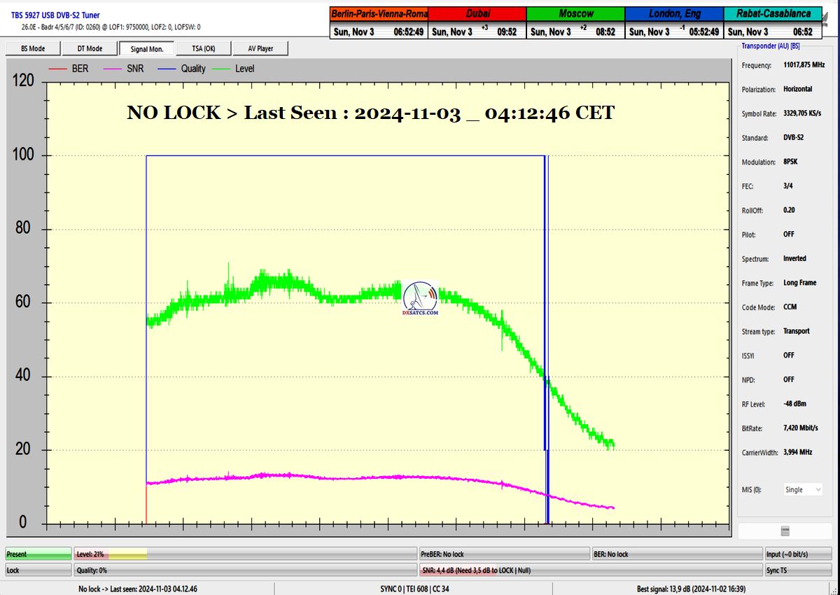 --- NO LOCK > Last Seen 04:12:46 CET ---