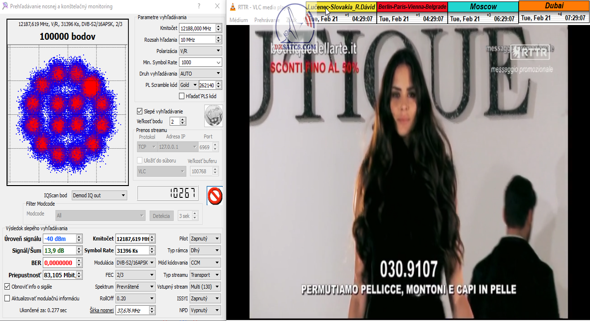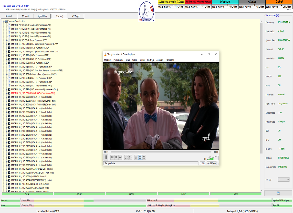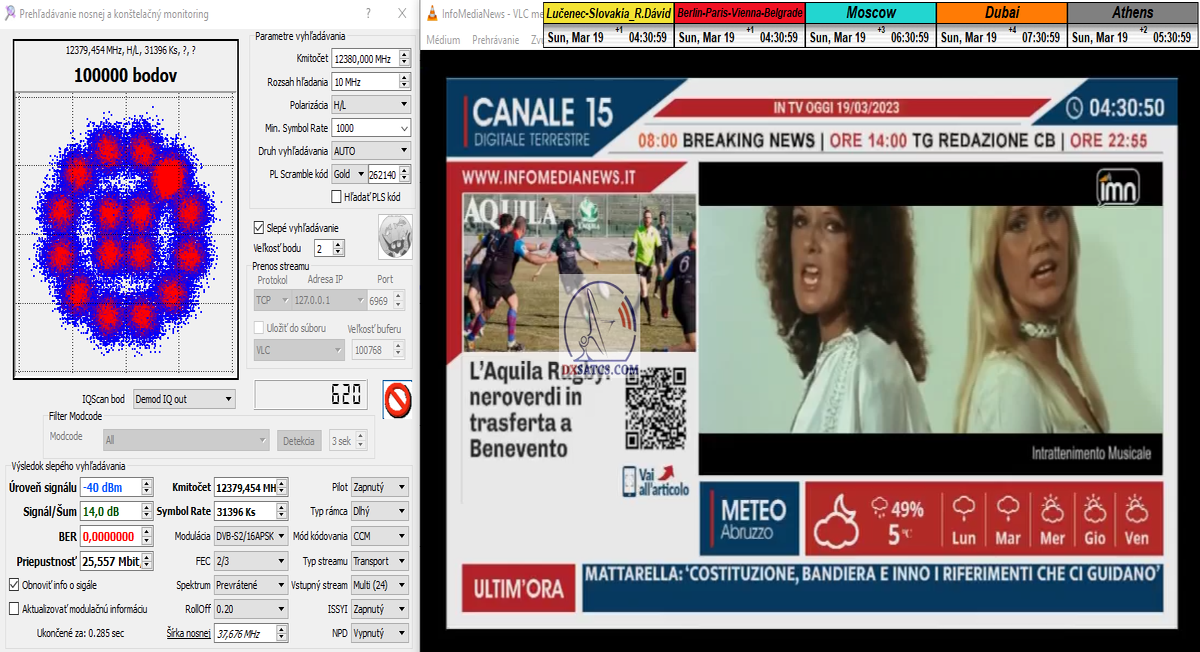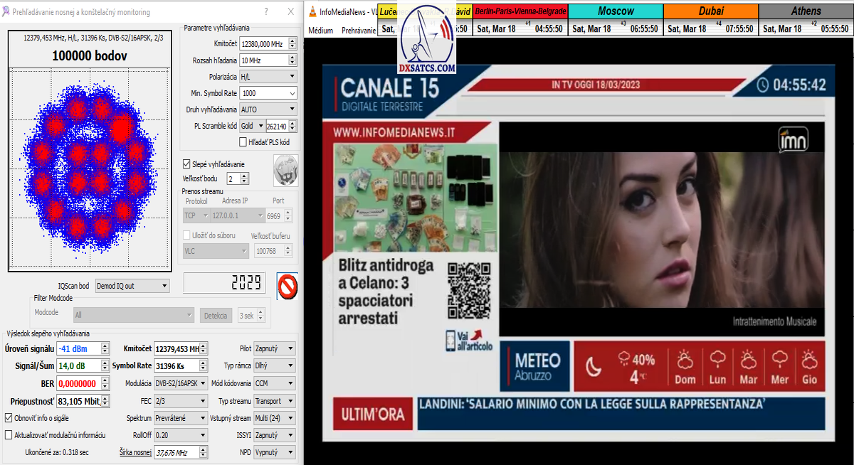 > PARAMETRE PRENOSU : DVB-S2 _ 16APSK _ SR=41 950 _ FEC=2/3 _ PLS Gold 262140 _ Multistream 12-13-17-23 <