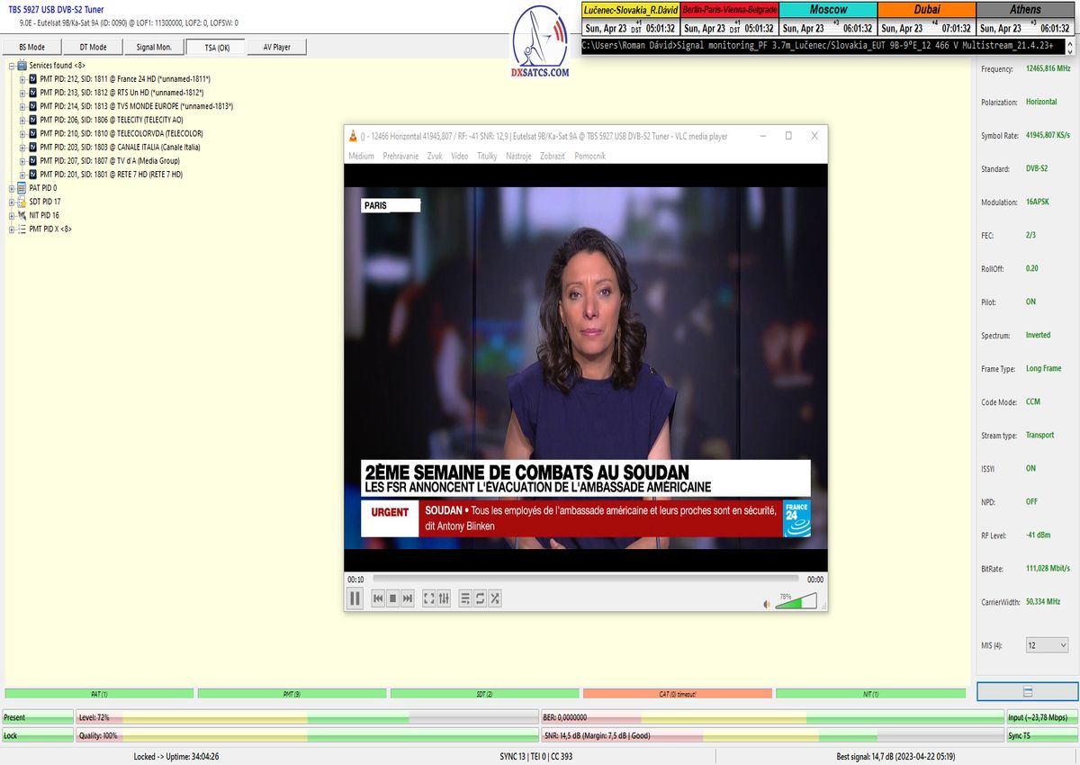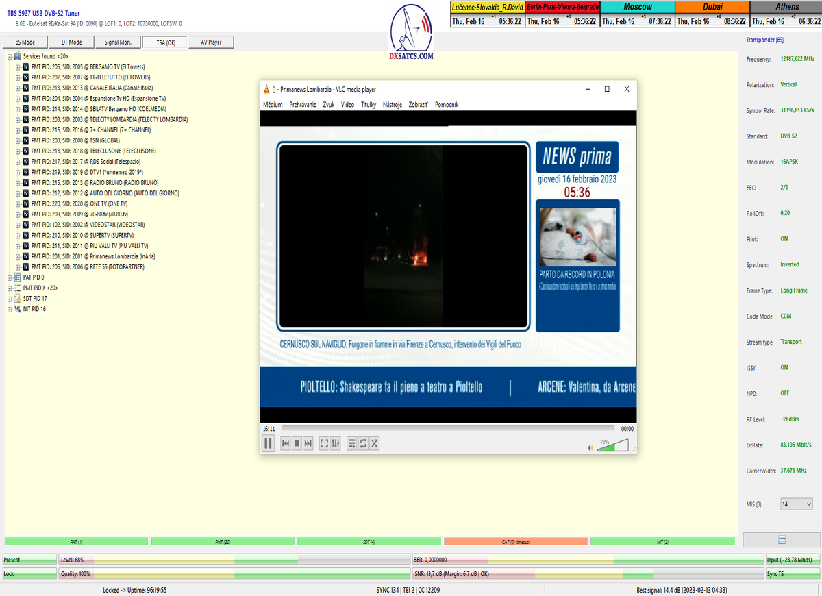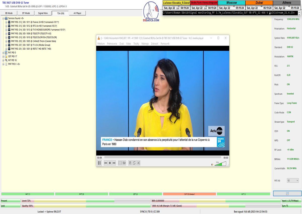 > PARAMETRE PRENOSU : DVB-S2 _ 16APSK _ SR=41 950 _ FEC=2/3 _ PLS Gold 262140 _ Multistream 12-13-17-23 <