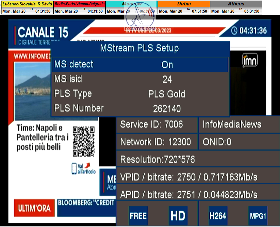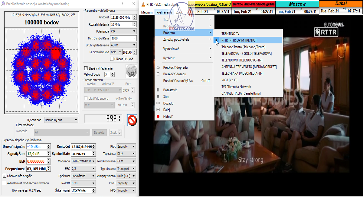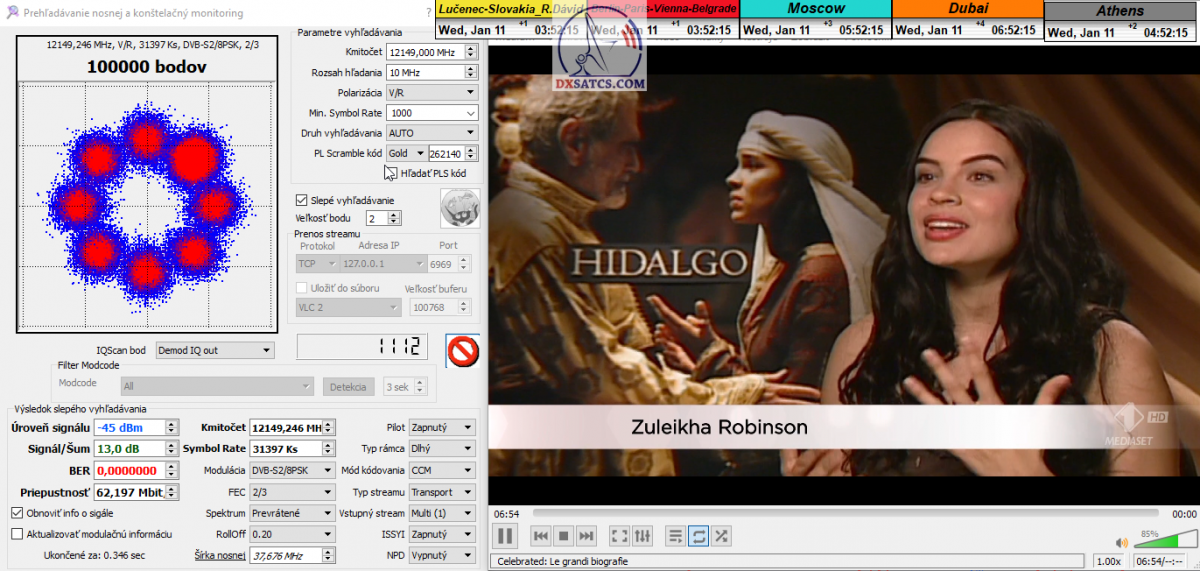 > PARAMETRE PRENOSU : DVB-S2 _ 16APSK _ SR=31 400 _ FEC=2/3 _ PLS Gold 262140 _ Multistream 1-3-4 <