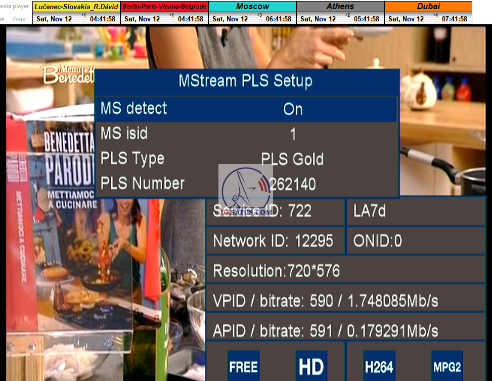 > PARAMETRE PRENOSU : DVB-S2 _ 16APSK _ SR=31 400 _ FEC=2/3 _ PLS Gold 262140 _ Multistream 1-3-4 <