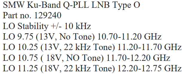 PF Prodelin 450 cm > Primárny žiarič > Autorom navrnuté systémové riešenie > LNB SMW_Q-PLL Type O s LOF stabilitou +/- 10 kHz_