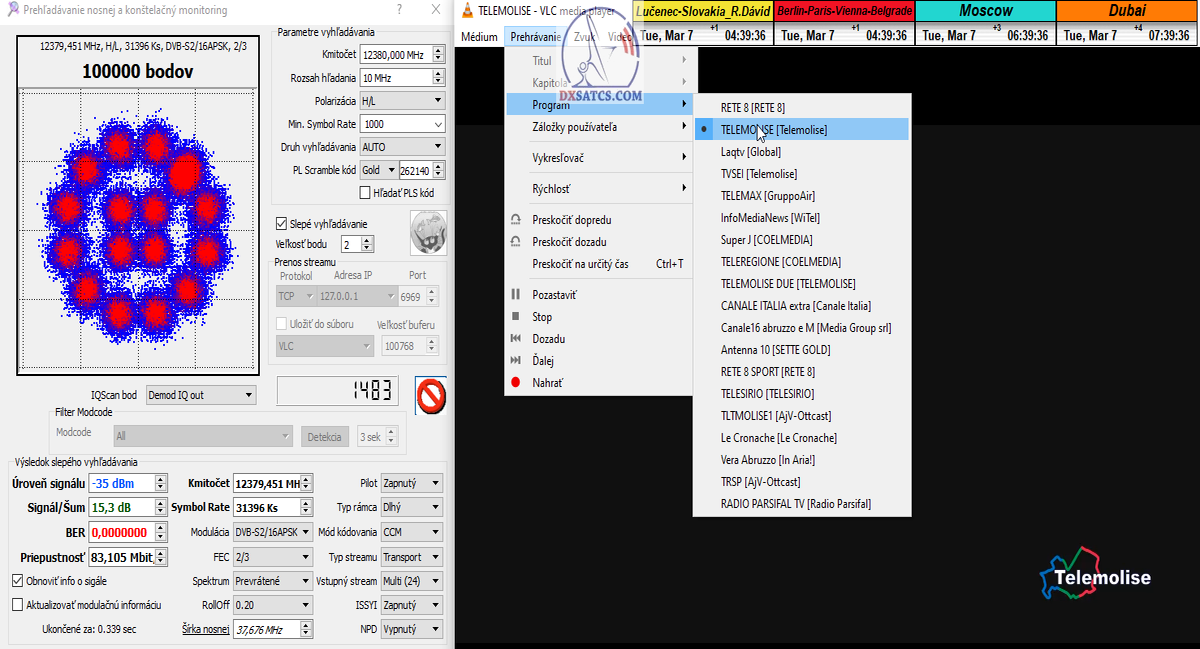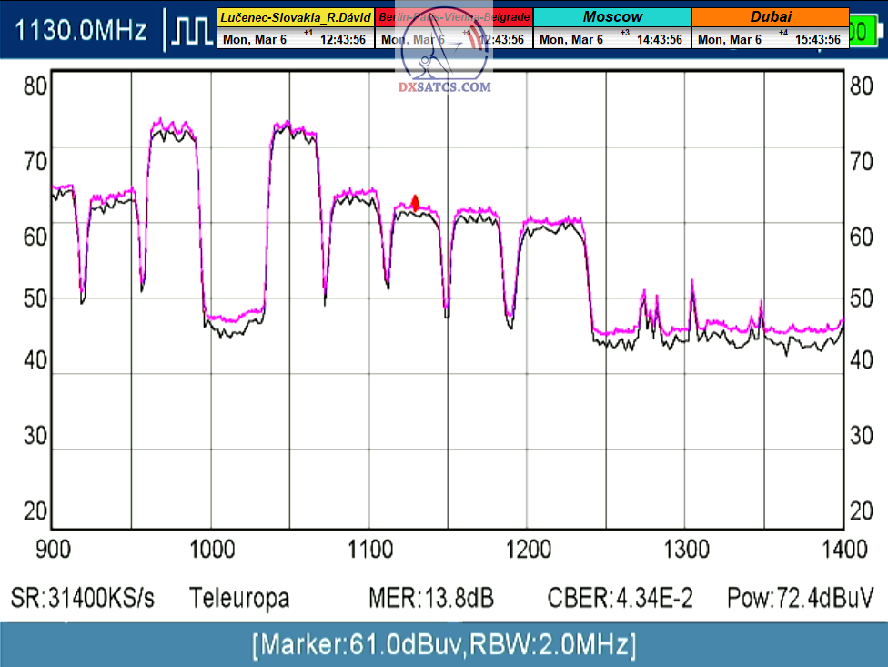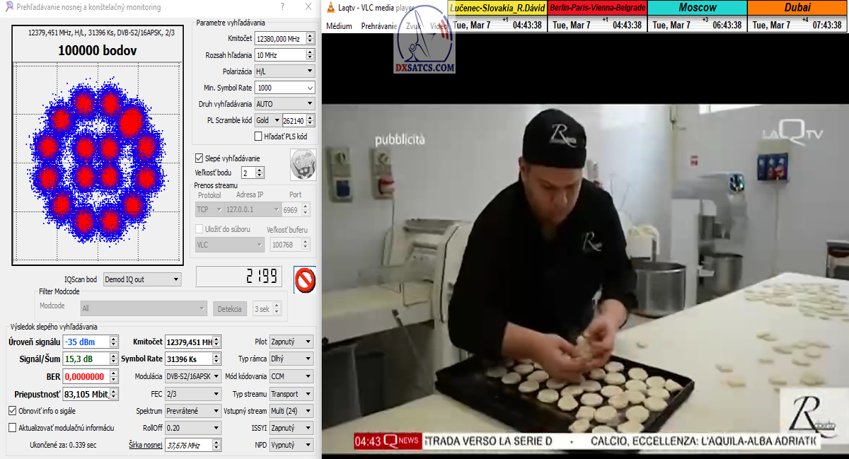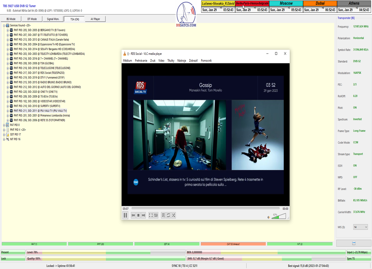 s verifikáciou stredoeurópskeho času v TV vysielaní,napríklad v SKY TG24,pretože to je dôkazom o reálnosti signálnej kvality,ktorú som v meste Lučenec dosiahol.Ak by niekto spochybňoval hladiny SNR zo samotného SW EBSpro,potom na dôkaz vyvrátenia týchto pochybností ponúkam ďalšie 3 signálne zdroje ako napríklad analyzátor Metek HD,4K receiver Octagon,SW CrazyScan a pochybnosti všetkého druhu sú razom blízke alebo rovné NULE. Ospravedlňujem sa za môj slovník určený pre publikum s určitou mierou "mentálnej invalidity alebo mentálneho postihnutia",ale občas je vhodné zopakovať si aj elementárnu abecedu,pretože  nie každý čitateľ pochádza z odbornej alebo vedeckej sféry a moje vysvetlenie smerujem aj do radov takzvaných
