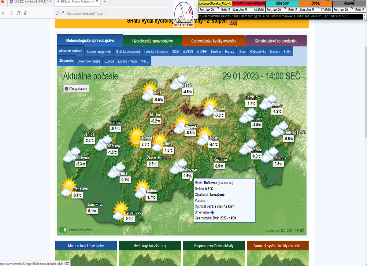 -A- : Začiatok signálneho monitoringu o 6:52 seč  a aktuálna poveternostná situácia