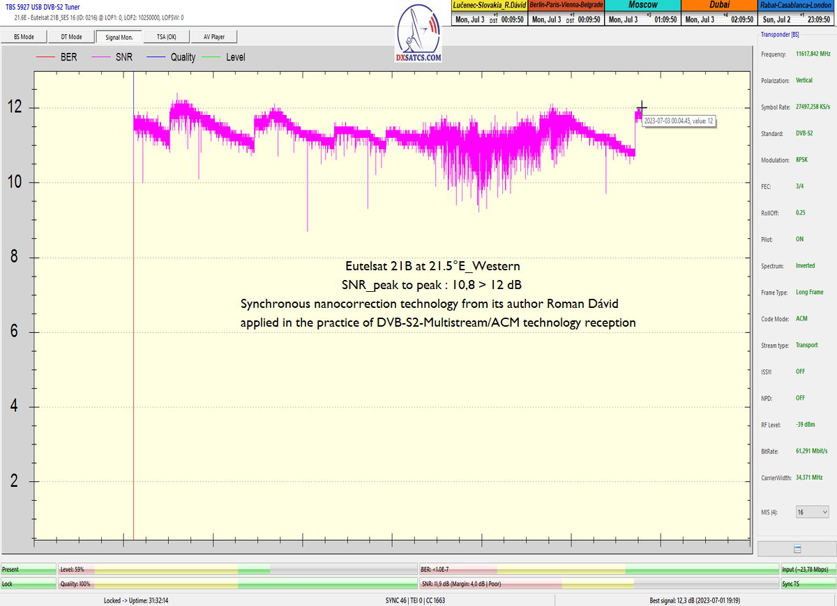 technológie Synchrónnych nanokorekcii nie je v otázke stability príjmu rozhodujúci,špičku kvality viac ako SNR=17 dB na f=12 466 MHz by som bez