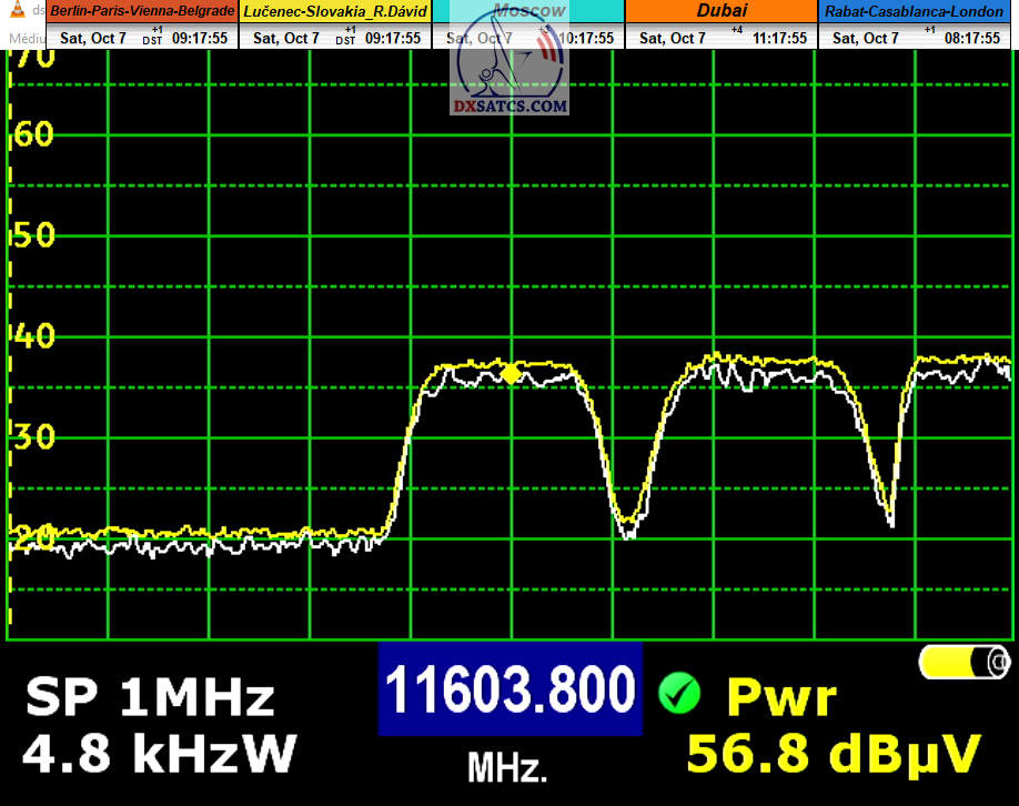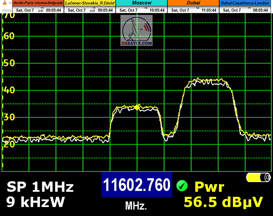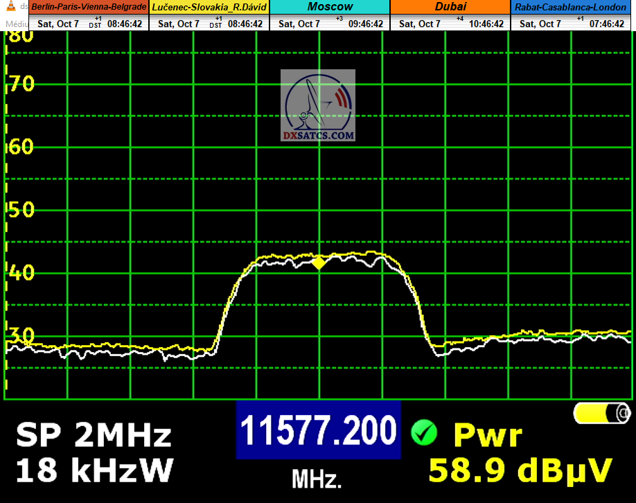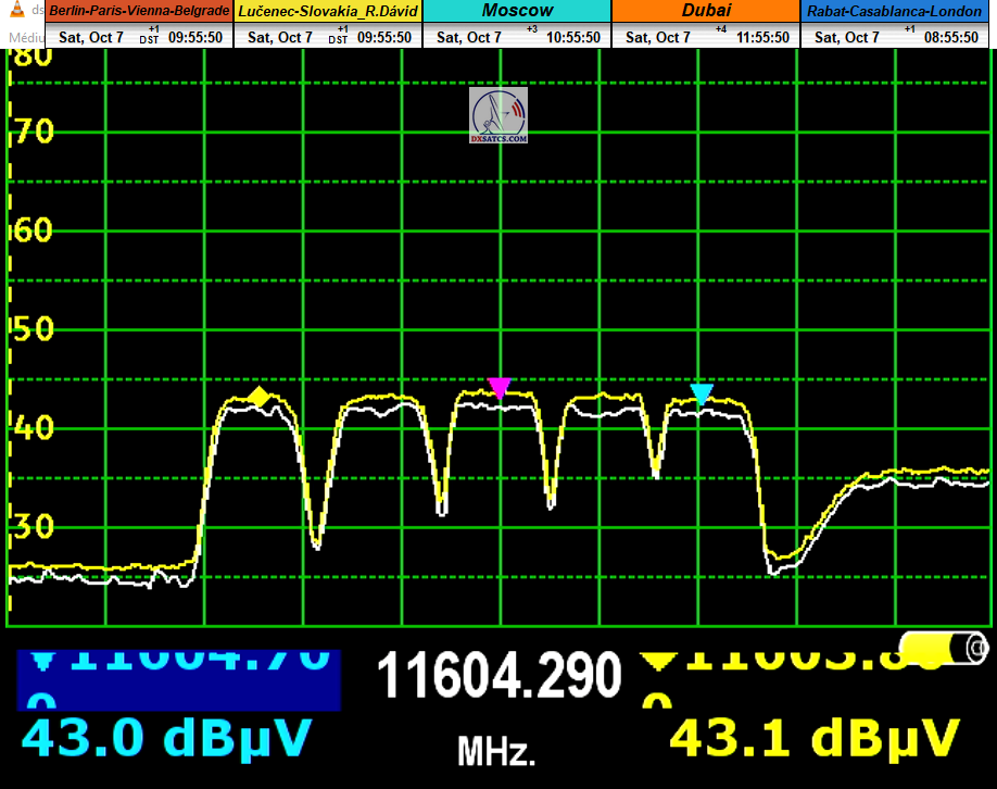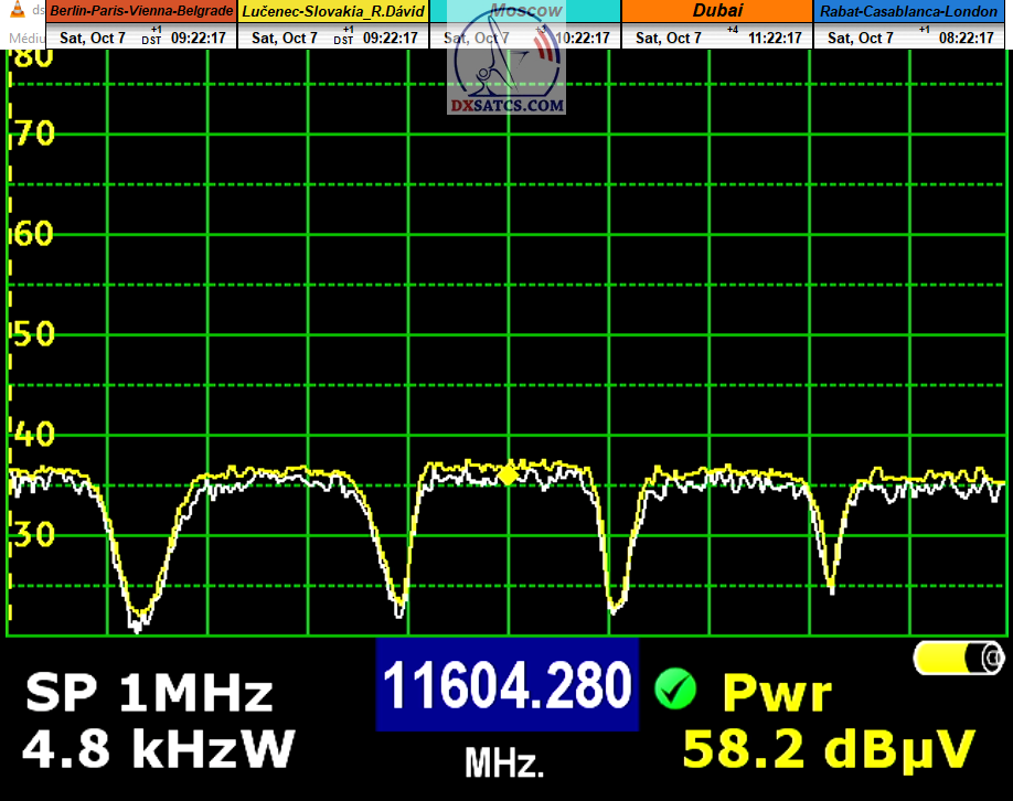 pre štandard DVB-S/QPSK,čiže nedokáže zamknúť ani jednu dnes analyzovanú nosnú zo spektra TP DW7,čo znamená že zobrazované