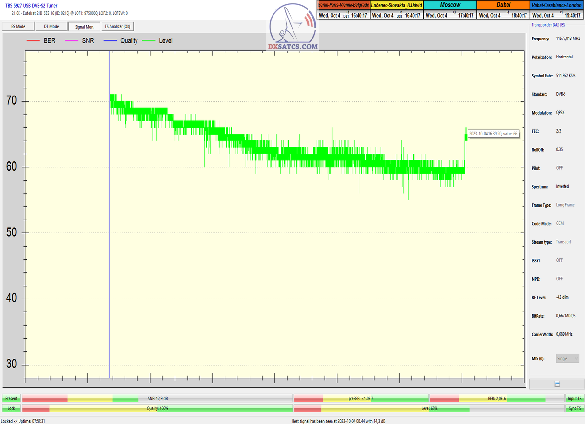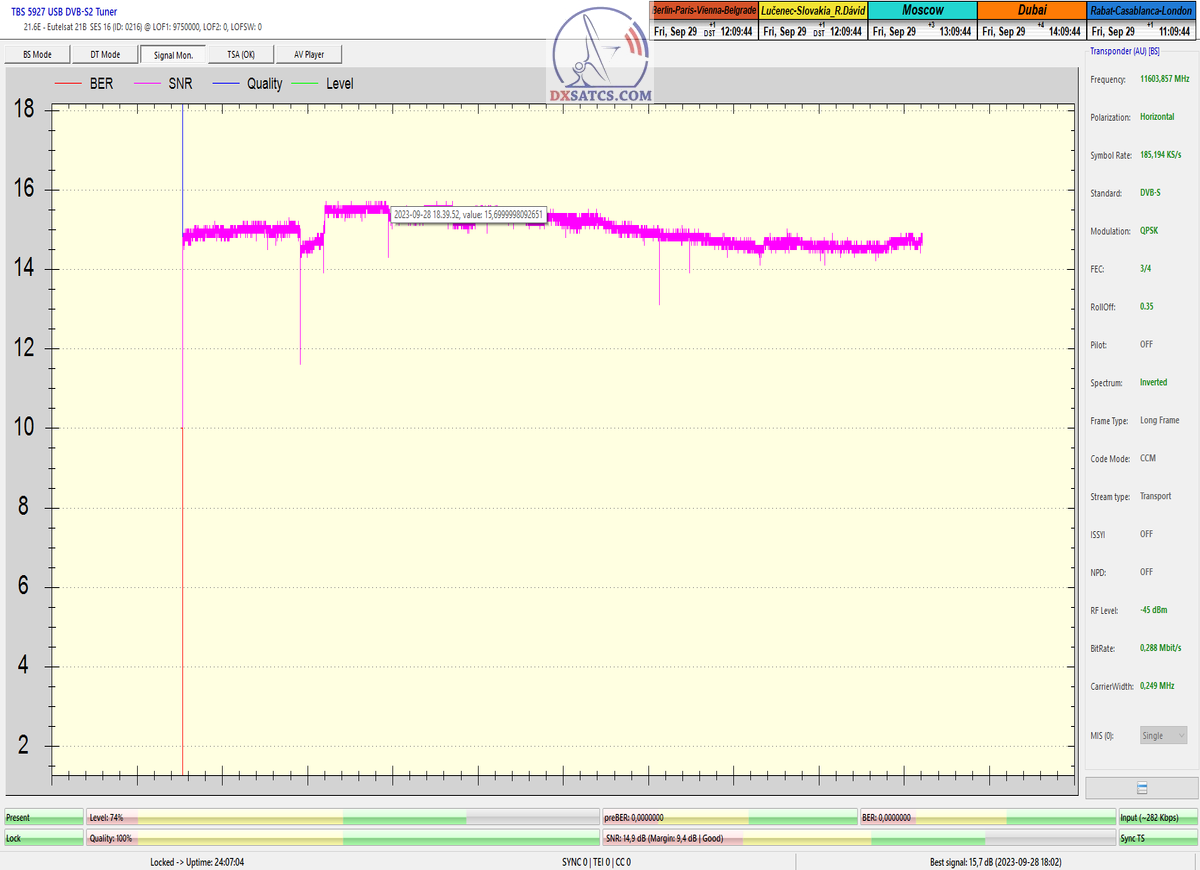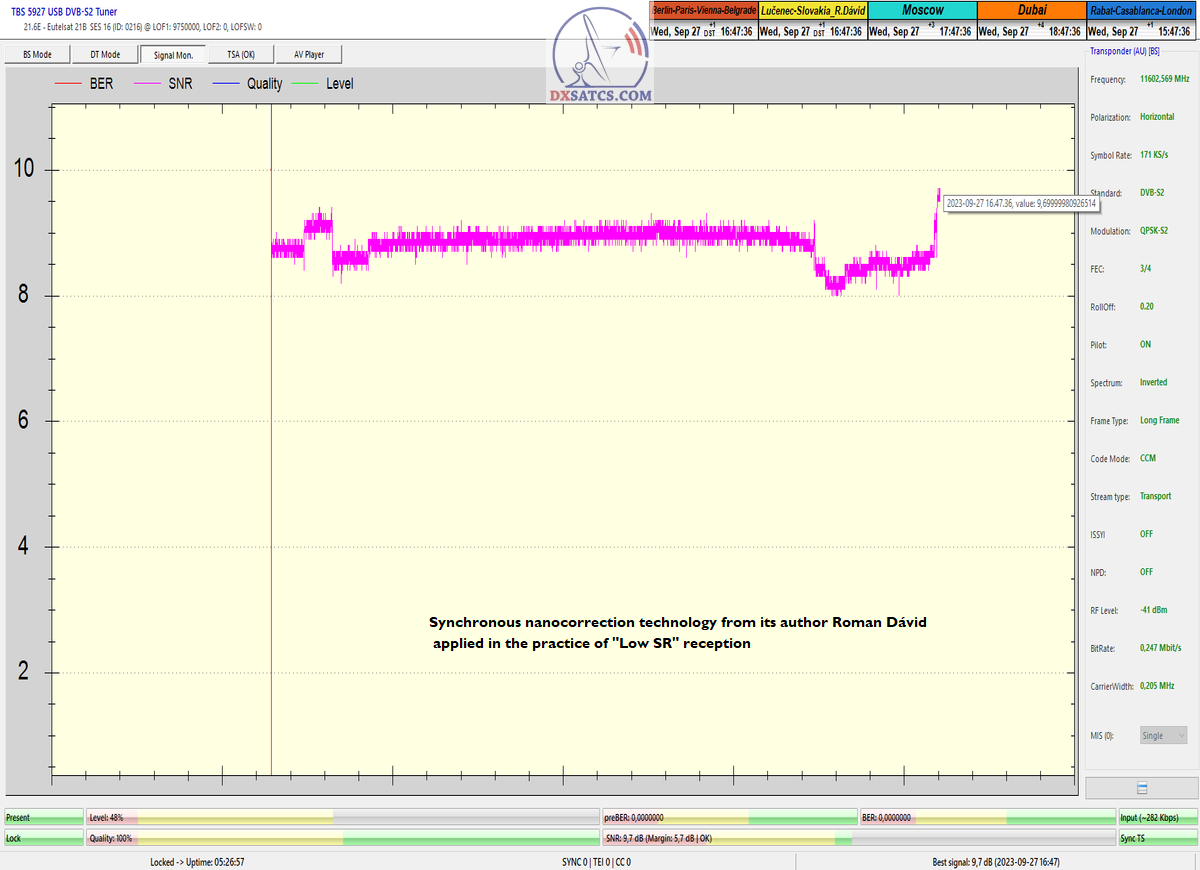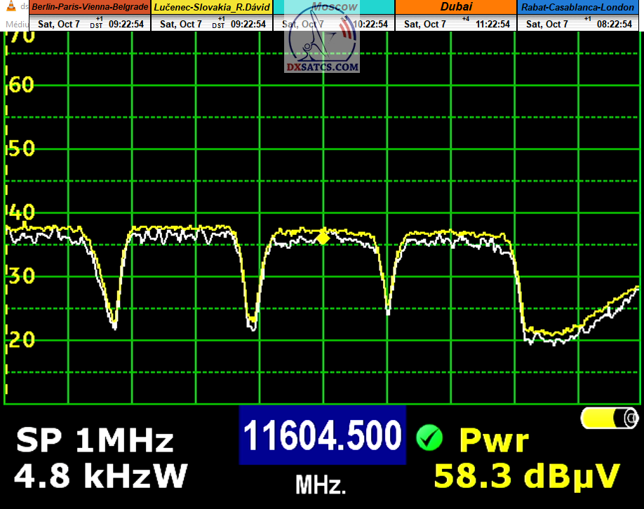 pre štandard DVB-S/QPSK,čiže nedokáže zamknúť ani jednu dnes analyzovanú nosnú zo spektra TP DW7,čo znamená že zobrazované