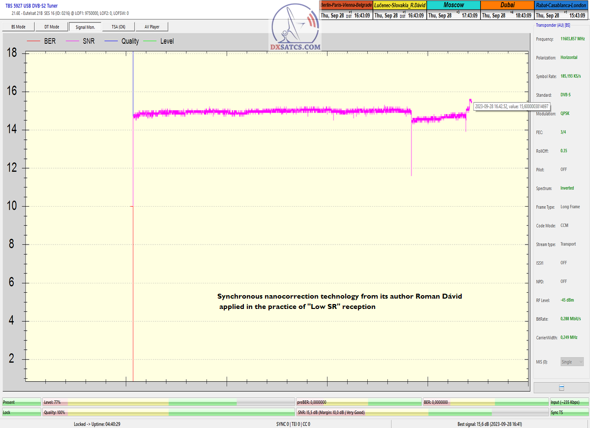 Satelitné distribúcie s relatívne nízkymi Symbolovými rýchlosťami SR od 170+ Ksym/sec : Autor Roman Dávid dnes uverejňuje úplne prvú