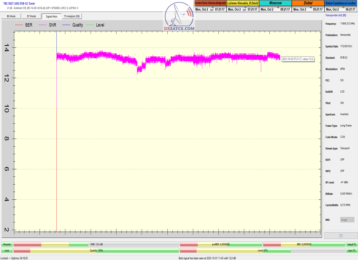 ►►Eutelsat 21B at 21.5°E-TP DW 7-Western: Continuous signal monitoring / Nepretržitý signálny monitoring