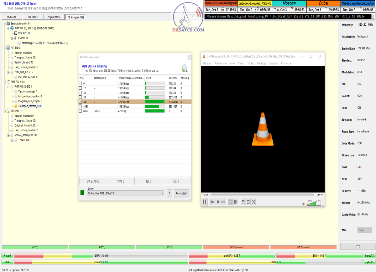 pracuje pod OS Linux Ubuntu,Debian ... ►In english : The used Televes brand analyzer has a clearly defined minimum symbol rate (SR) value for LOCK on the carrier at 2000 Ksym/s