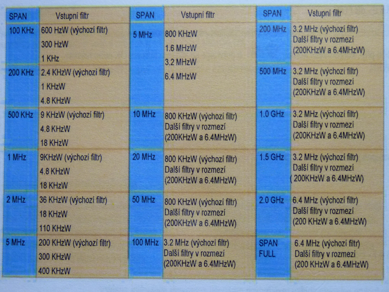 - hodnota vstupných filtrov RBW= 1 kHzW + 600 HzW -
