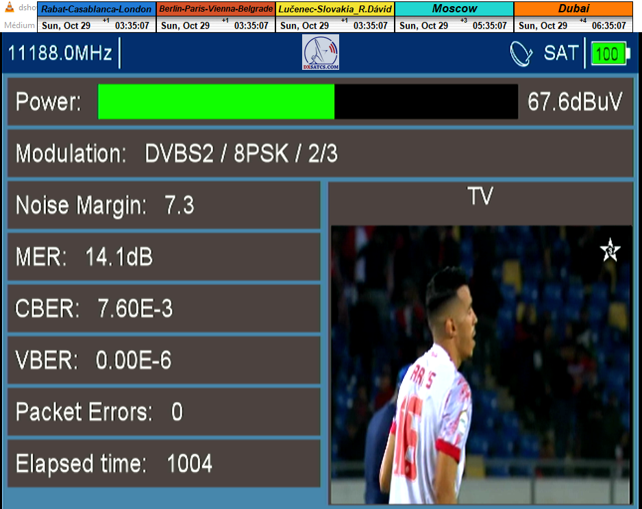 on the frequency of the Moroccan provider SNRT Arryadia> f=11 188,4 MHz_H-Eutelsat 21B-21.5°E.These results will serve as the foundation for