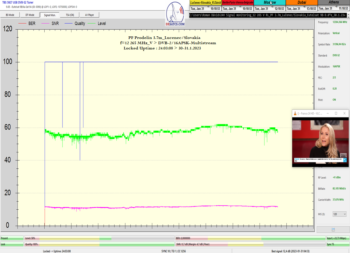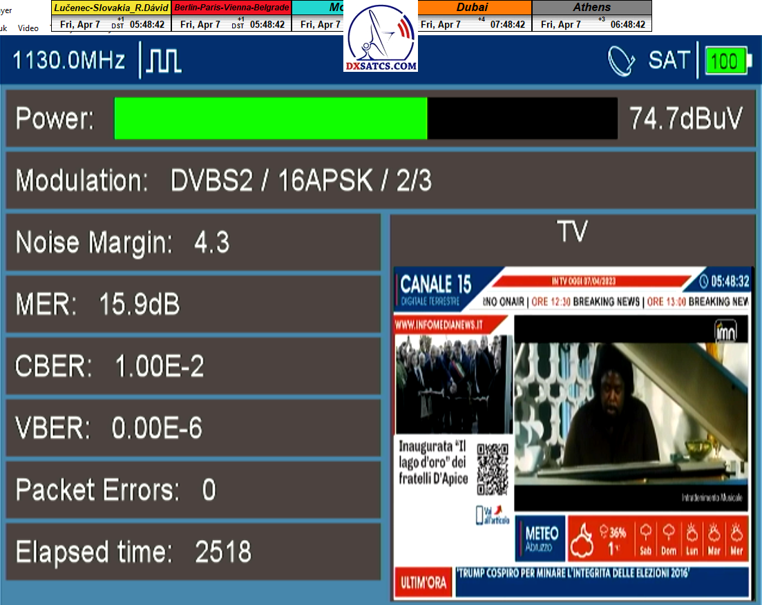Synopsia : Dnešné výsledky meraní špičky kvality na satelitnej distribúcii cez transpondér TP IT8 na f=12 380 MHz_V v norme 16APSK/Multistream dokazujú