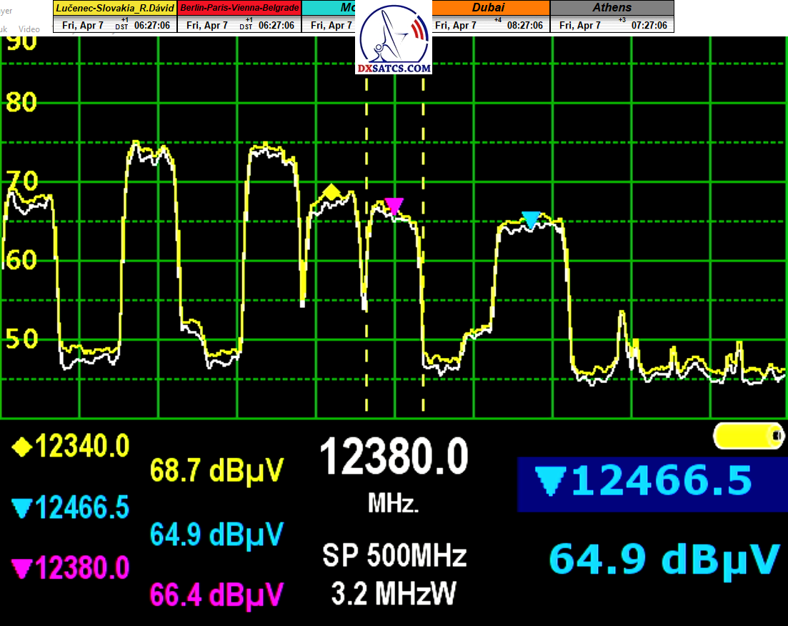 ABSTRAKT : dnes v analýze frekvenčného spektra vertikálneho vektora vlnenia v rozsahu od 12 200 do 12 750 MHz_LNB LOF=11,25 GHz