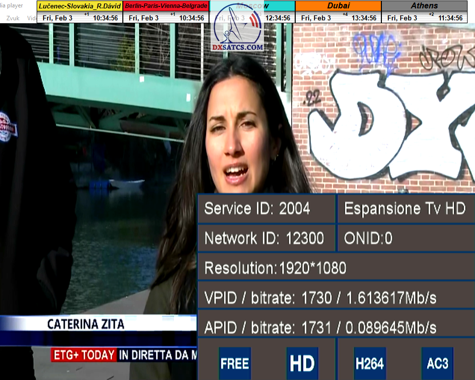 vo vyžarovacom zväzku Nordic & Eastern a talianskeho operátora EI Towers vo vyžarovacom zväzku Italy Ku cez frekvenciu
