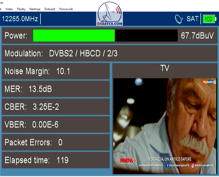 sú momentálne vypnuté + analýza kvality vysielania v štandarde DVB-S2/Multistream na f=12 111 MHz s MER=15,1 dB