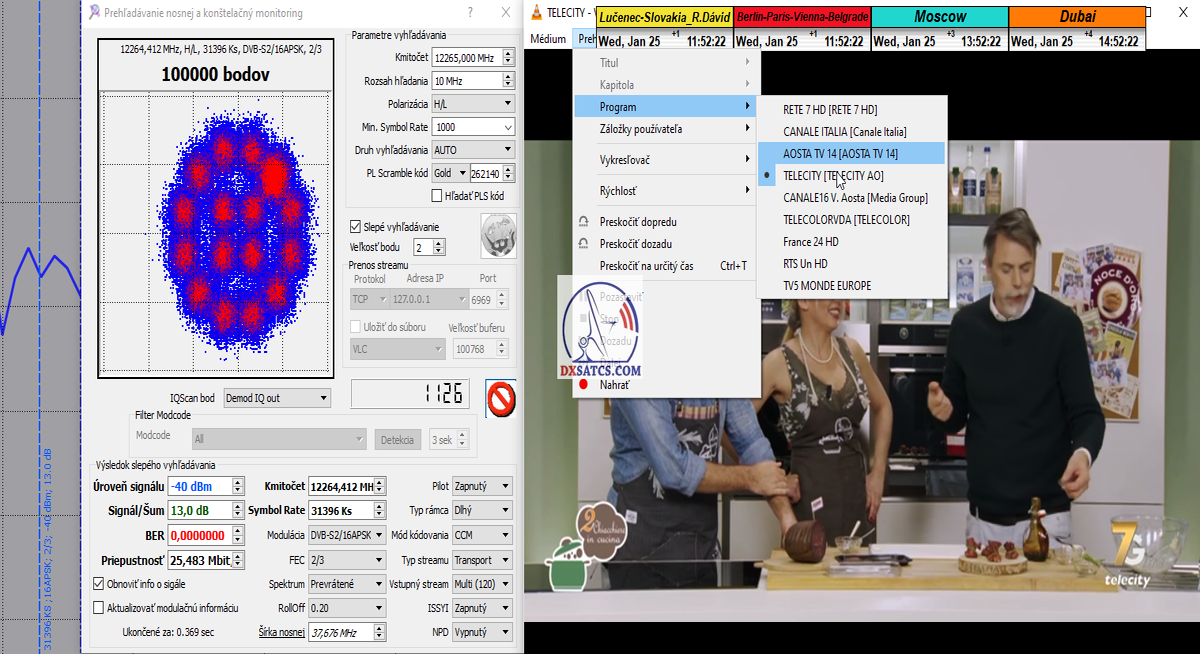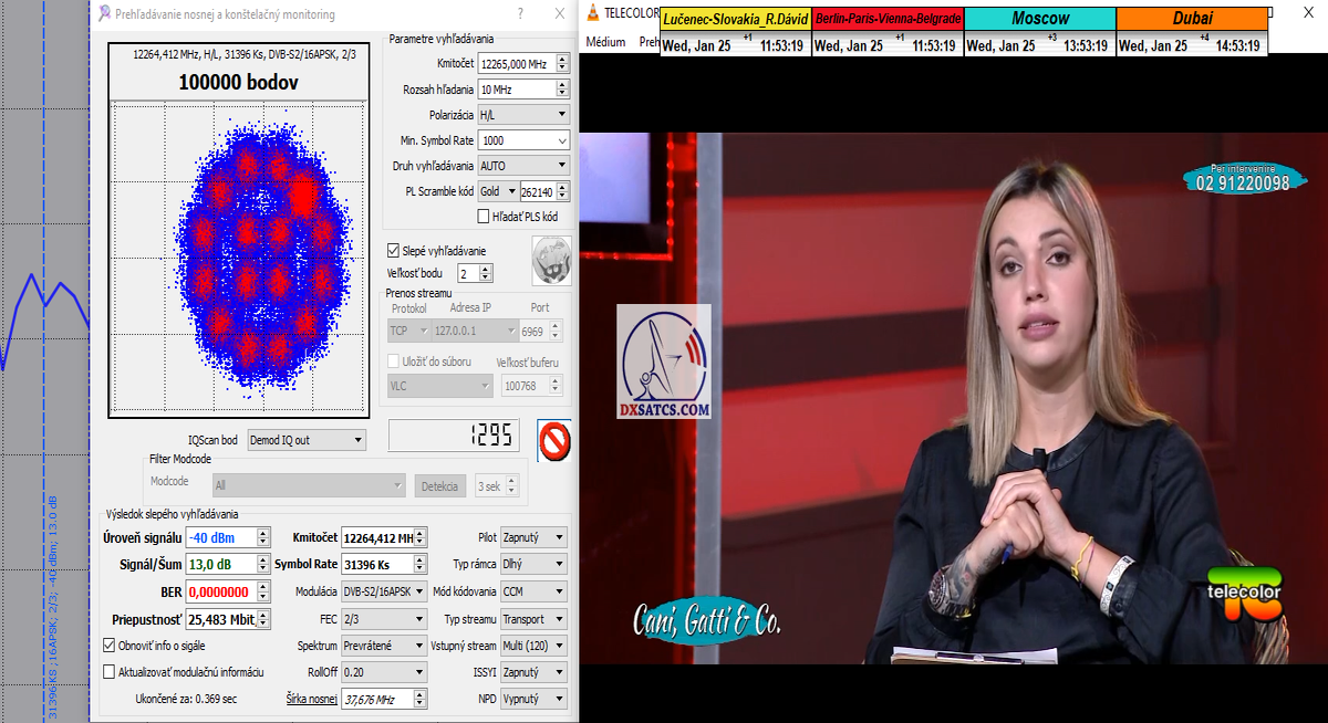 s aplikovaným technickým štandardom DVB-S2/Multistream_16APSK_FEC=2/3 a MIS=14+17.