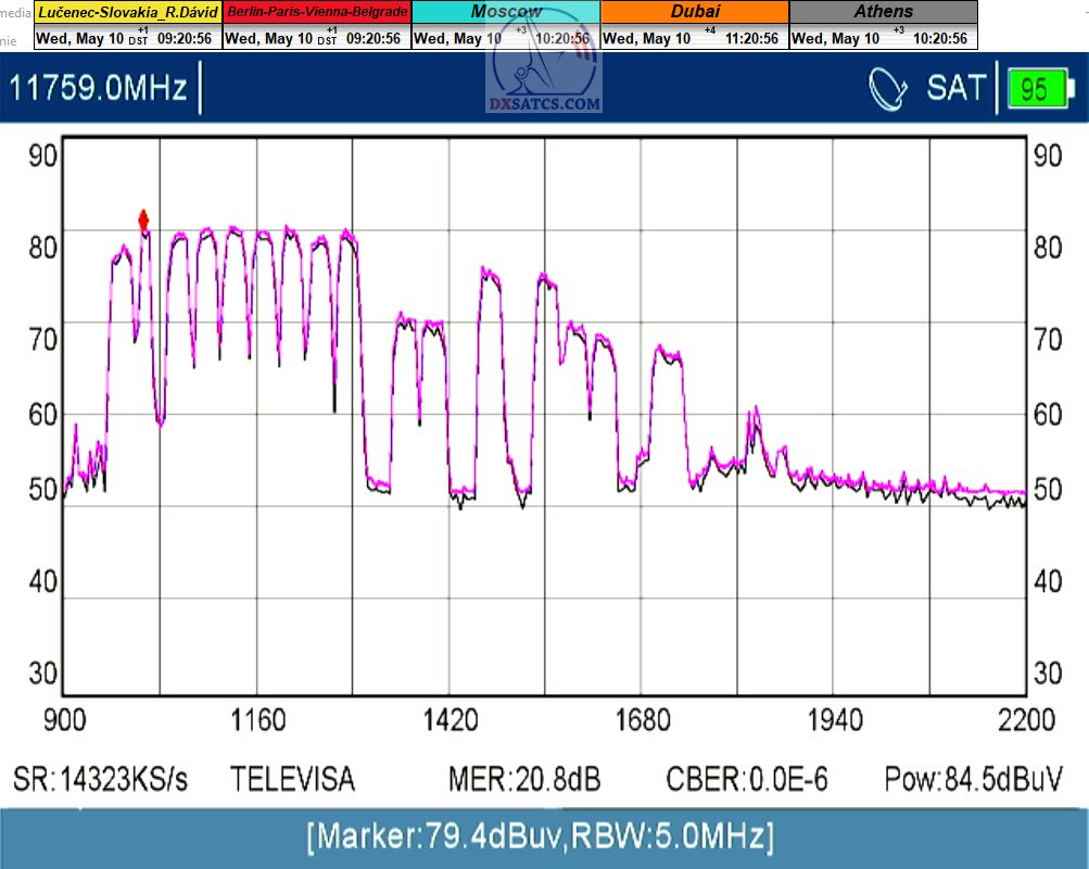 Televisa f=11 759 MHz na ktorom opäť dokážem že analyzátory Metek HD a Televes H60 demonštrujú plne porovnatelné až identické
