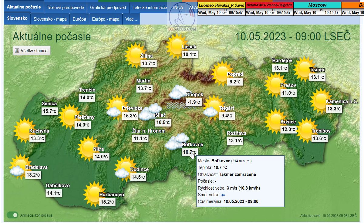 poveternostná situácia pri výkone meraní a zberu dát dnes 10.5.2023 : takmer zamračené so slabím mrholením