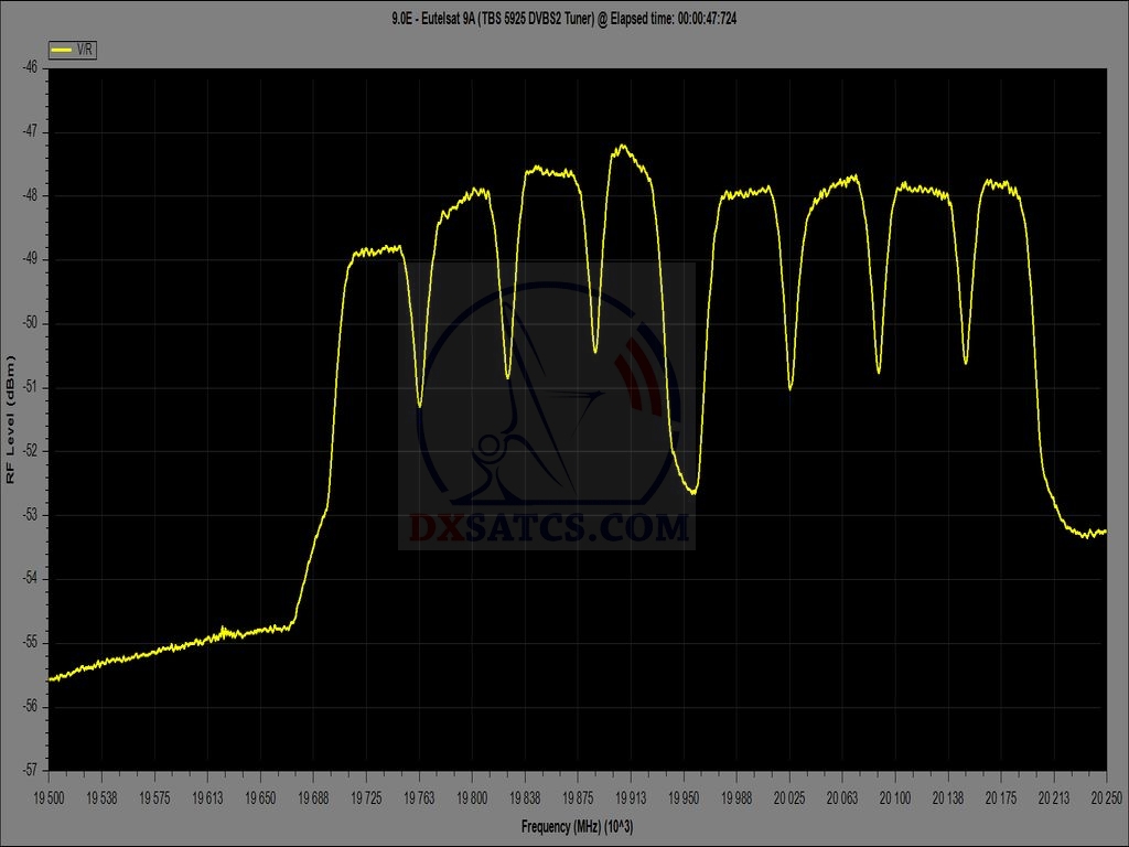 ►Eutelsat KA-Sat-9.0°E-KA Band-beacon frequency : 19 680 MHz / H wave vector