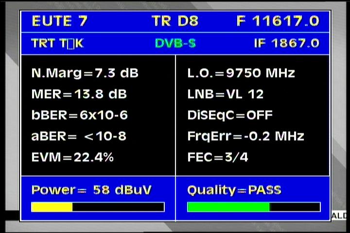 feeds ANI-BT TEST 23... 6 666 7/8 EUROPE A 80-220+ cm FTA/Biss/4:2:2/RAS