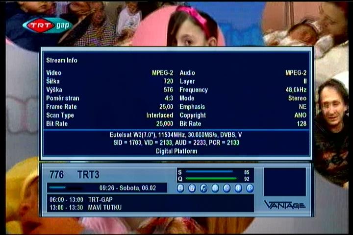 Eutelsat W3A at 7.0°E - Europe B footprint : 11 617 V packet Digiturk