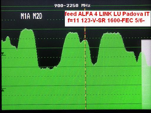 Italian telecomunication company from Padova use every day this FEED LINK with NIT NAME ALFA 4 LINK LU in f=11 123 MHz - V pol - from satellite HellasSat 2 at 39,0°E ...........Taliansky telekomunikačný operátor LINK TLK Padova každodenne vyťažuje PRENOSOVÝ FEED KANÁL CEZ PREVÁDZAČ TP5 pod NIT MENOM ALFA 4 LINK LU na kmitočte f=11 123 MHz z družice HELLASSAT 2 na 39,0°E