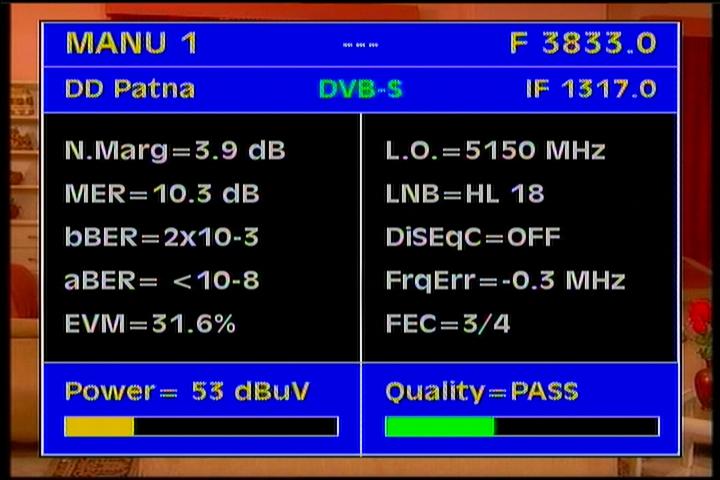 Insat 3A/4B at 93.5°E - C band footprint : 3 833 H DD Bihar