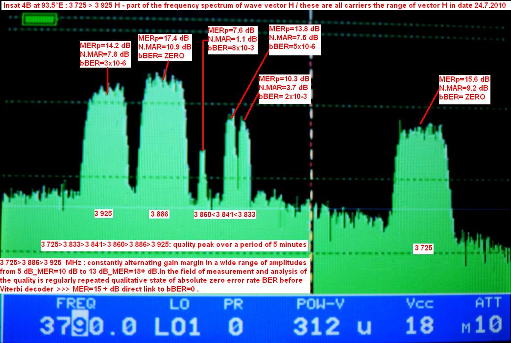 Insat 4B spectral analysis - wave vector H : analyzed carriers_ 3 725 , 3 833 , 3 841 , 3 860 , 3 886 , 3 925