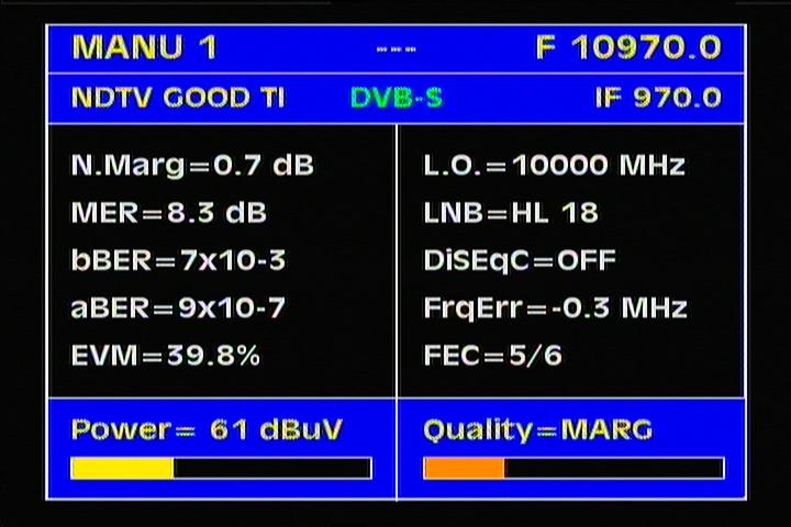Insat 4A at 83.0°E - footprint in KU band - TATA Sky : LIVE measurement results