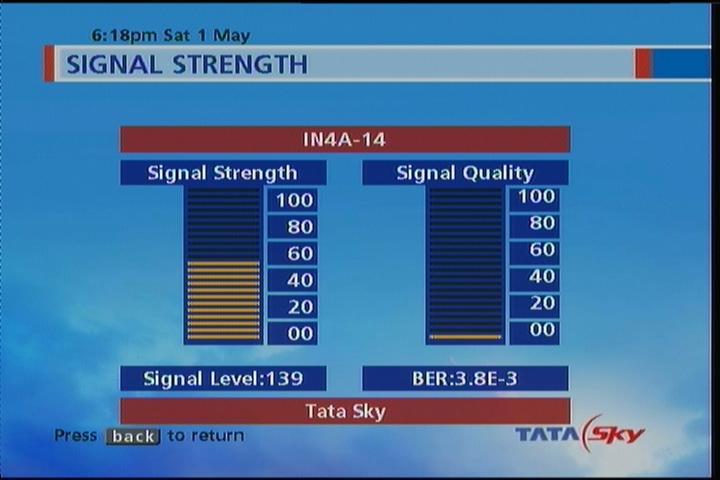Insat 4A at 83.0°E - footprint in KU band - TATA Sky : quality peak in time span from 3 to 5 min.