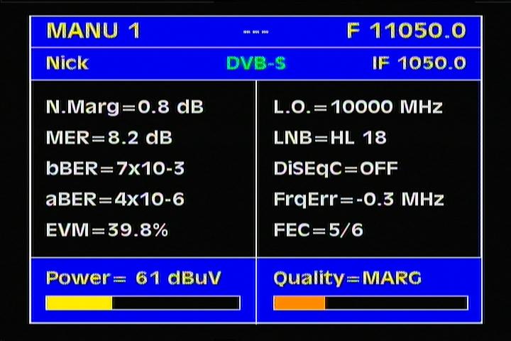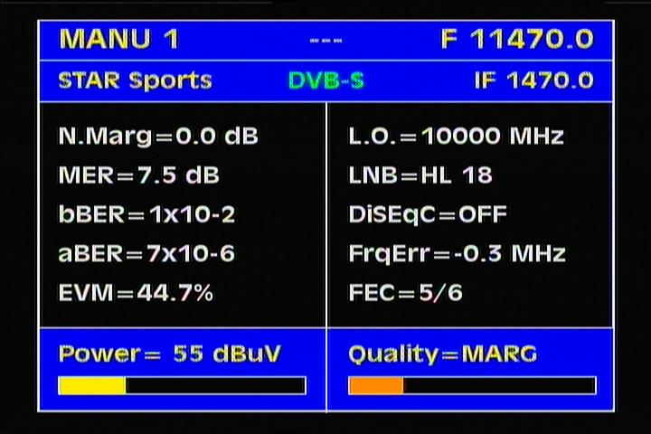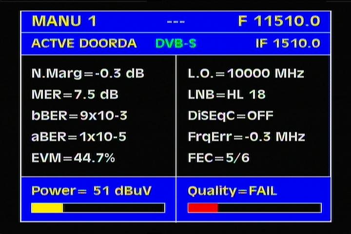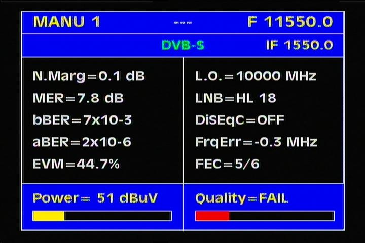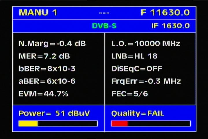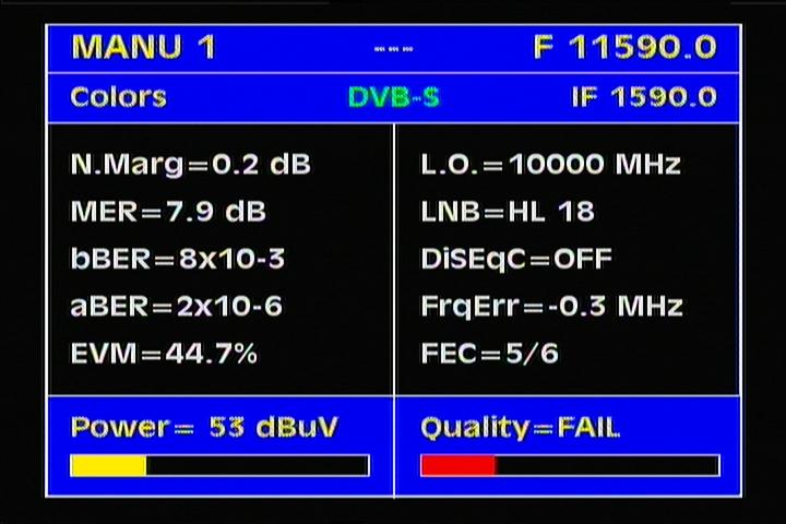 -- treshold levels for the FEC protocols : 3/4 > MER=4.0+ dB ___ 5/6 > MER=5.0+ dB --