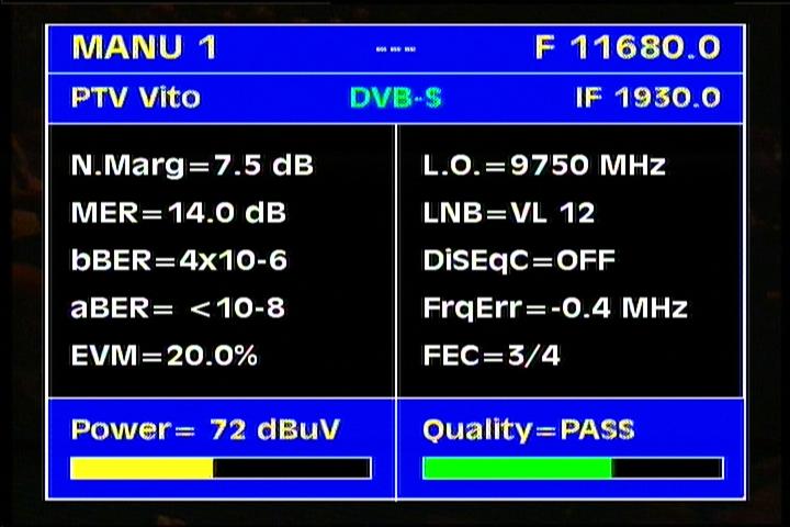 following measurement results in the carrier in the format DVB-S2 : stable zero level error packets PER=1x10-7 ,